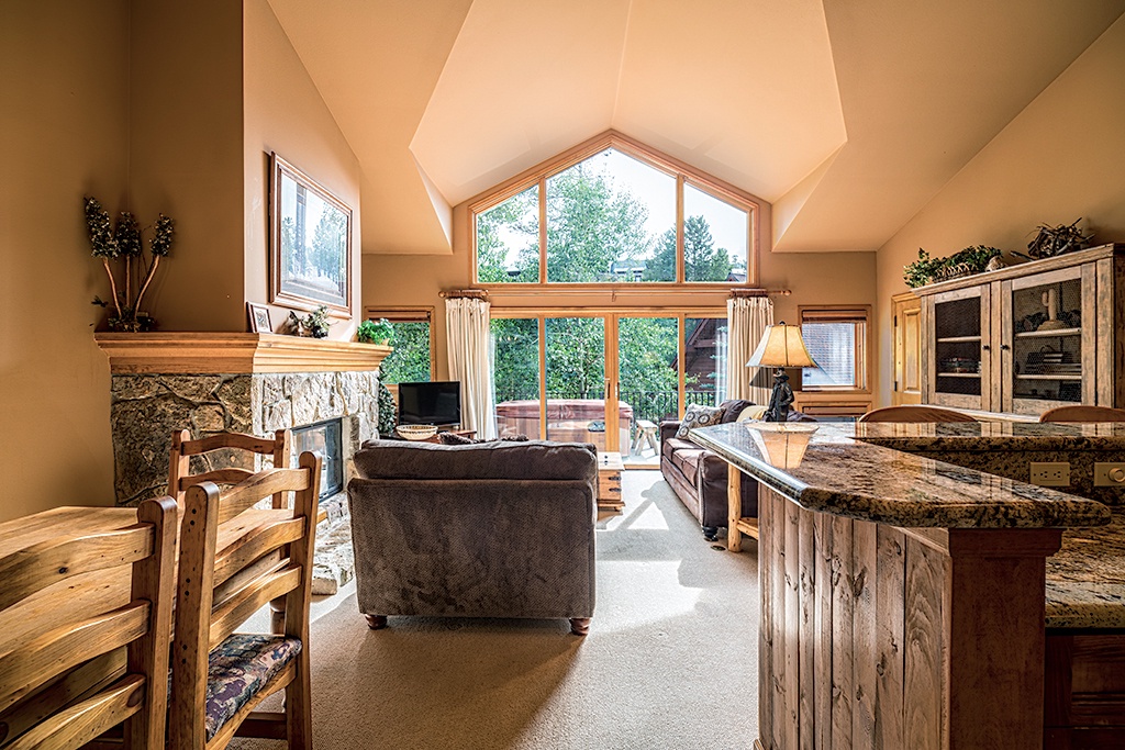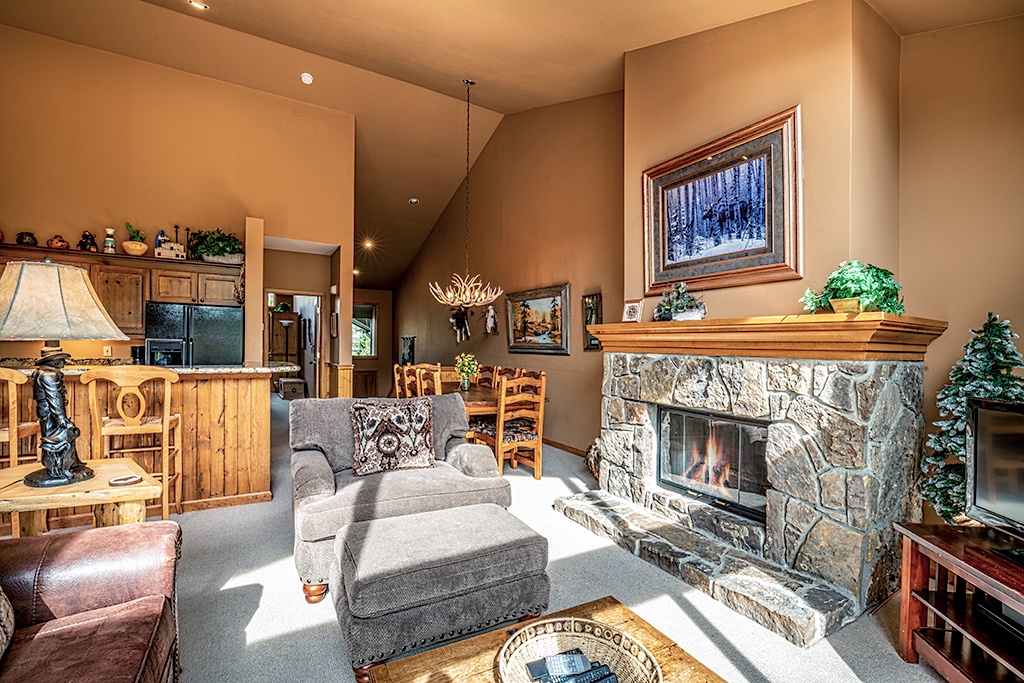 This is a beautiful three bedroom townhome, located just one block from both Quicksilver chairlift and historic Main Street. This townhome is in a quiet location featuring a secluded wood view from the deck. The townhome affords a vaulted living area and master bedroom, comfortable mountain furnishings, washer/dryer, gas fireplace and complimentary Wi-Fi. Relax in your private hot tub after a long day of skiing. A very popular choice for families, this unit also has access to the Upper Village outdoor heated pool directly behind the unit.