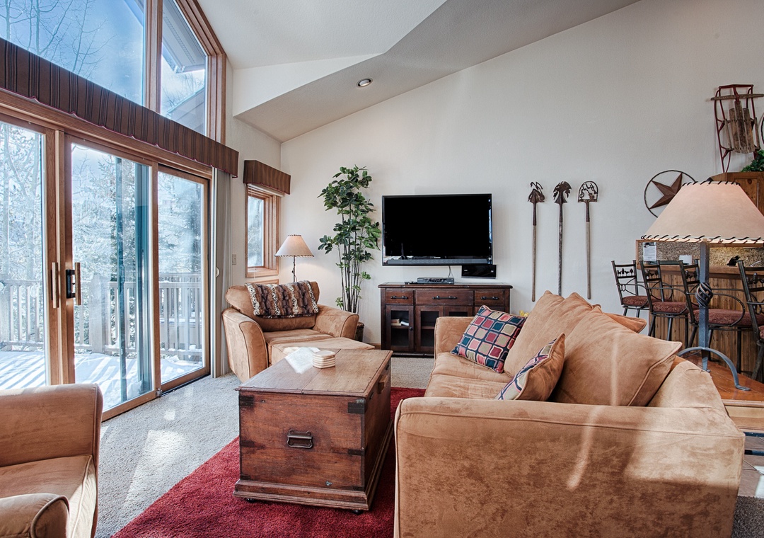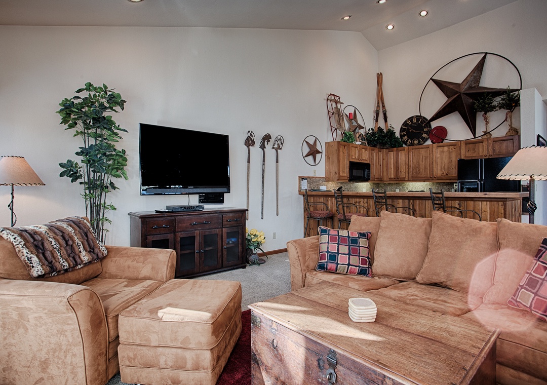 One Breckenridge Place is one of our most popular properties with an amazing location just one block from Main Street and across the street from the base of Peak 9. This wonderful corner unit offers beautiful furnishings, flatscreen televisions, a spacious floor plan and much much more. The property has cable in most bedrooms and there is a TV for DVDs in the queen bedroom. Guests can enjoy the the private deck, garage parking, as well as access to the Upper Village heated outdoor pool and 3 hot tubs.