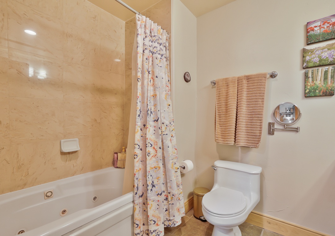 Retreat to the inviting bedroom, where a comfortable queen-sized bed promises a restful night’s sleep. The bedroom also offers ample closet space and a calming ambiance, perfect for recharging after a day of adventure. The bathroom is both clean and functional, featuring a shower/tub combination, fresh towels, and complimentary toiletries, ensuring a pleasant stay.
