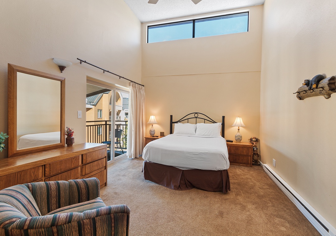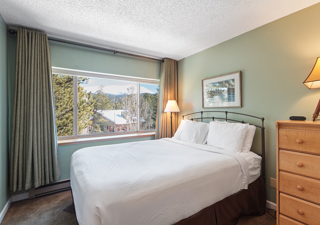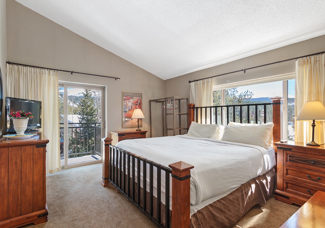 Situated at the south end of town, this fourth floor condo offers a spacious floor plan with a vaulted interior and beautiful views. Featuring an open kitchen, flat screen TVs in living area and master bedroom, gas fireplace and a balcony with expansive views of the ski area, this condo is finely appointed with the nice mountain furnishings. Whether here on work or play, you can stay connected with complimentary Wi-Fi, recently updated to ensure fast, high-speed internet. Guests will have access to secured underground heated parking and elevator access.
