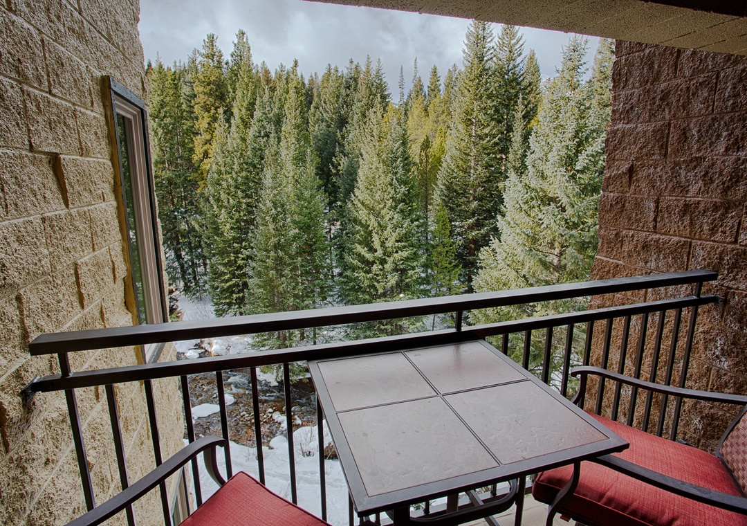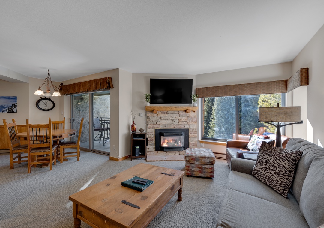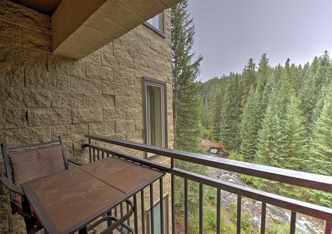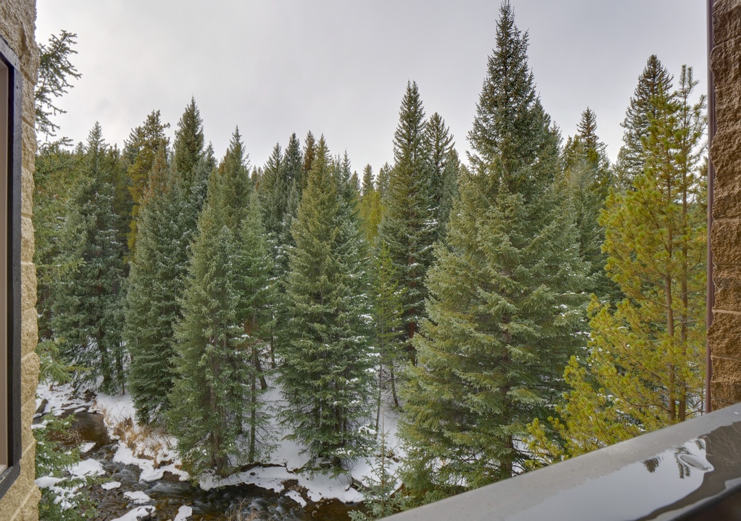 The Powderhorn condos are just steps across the stream from the high-speed 6-passenger Quicksilver lift at the base of Peak 9 and only two blocks to Main Street. Some of the amenities include a gas fireplace, washer/dryer, and underground garage parking. Guests enjoy the deck with amazing river and forested view. Also, stay connected with recently updated, free high-speed wireless internet.