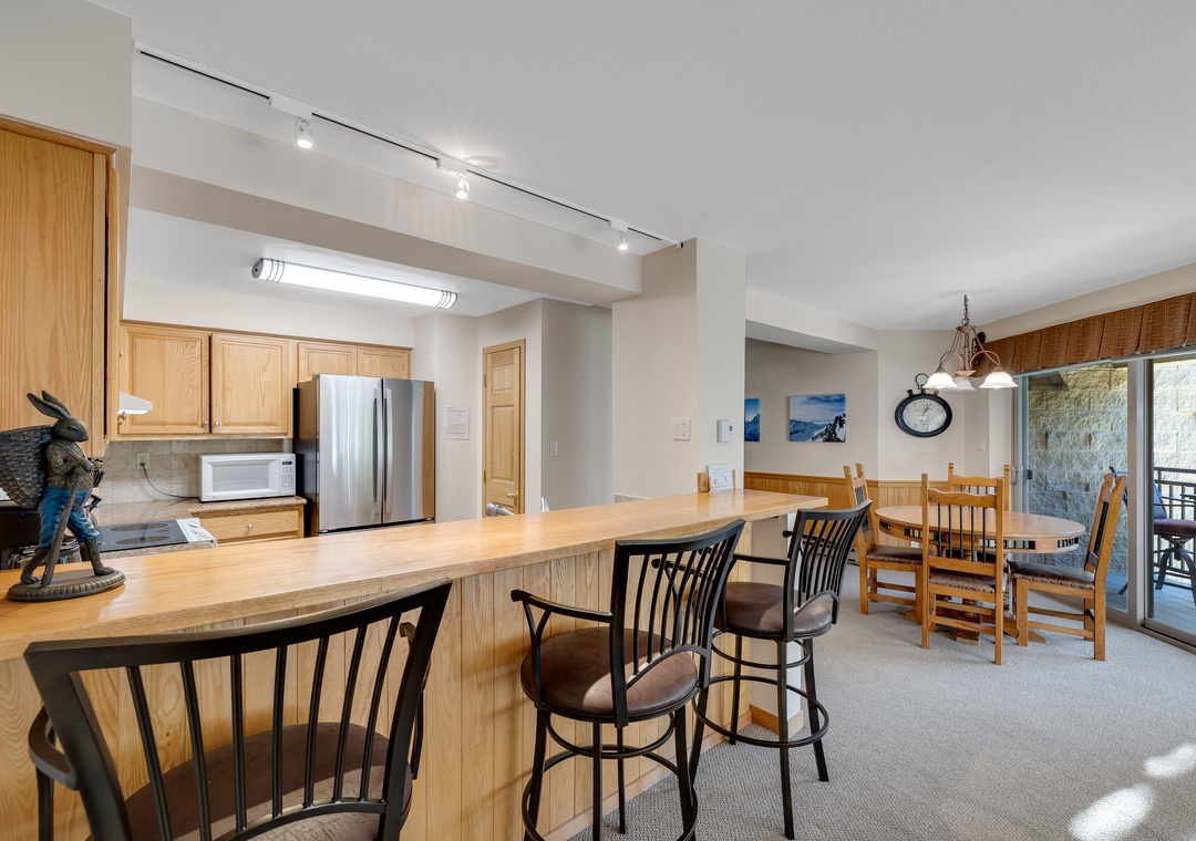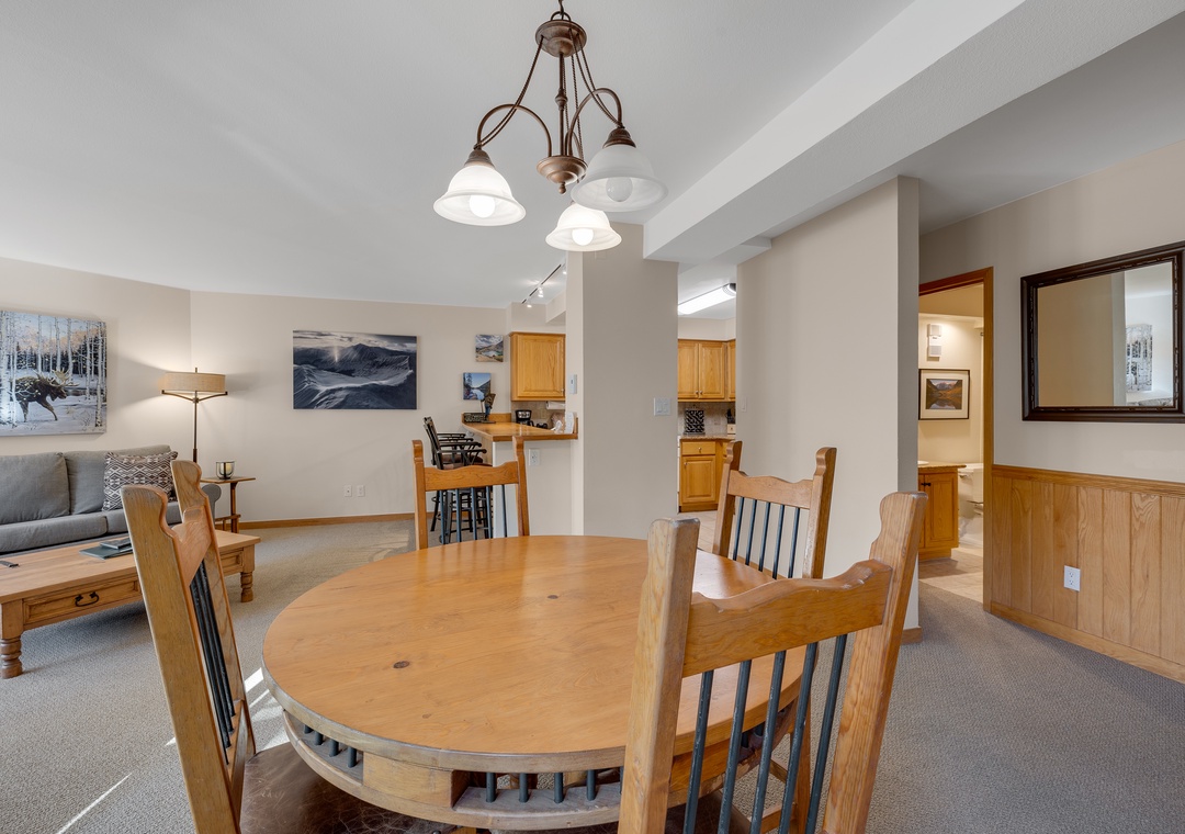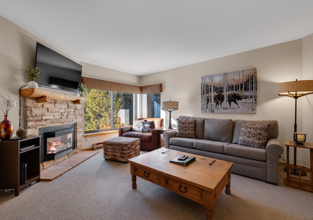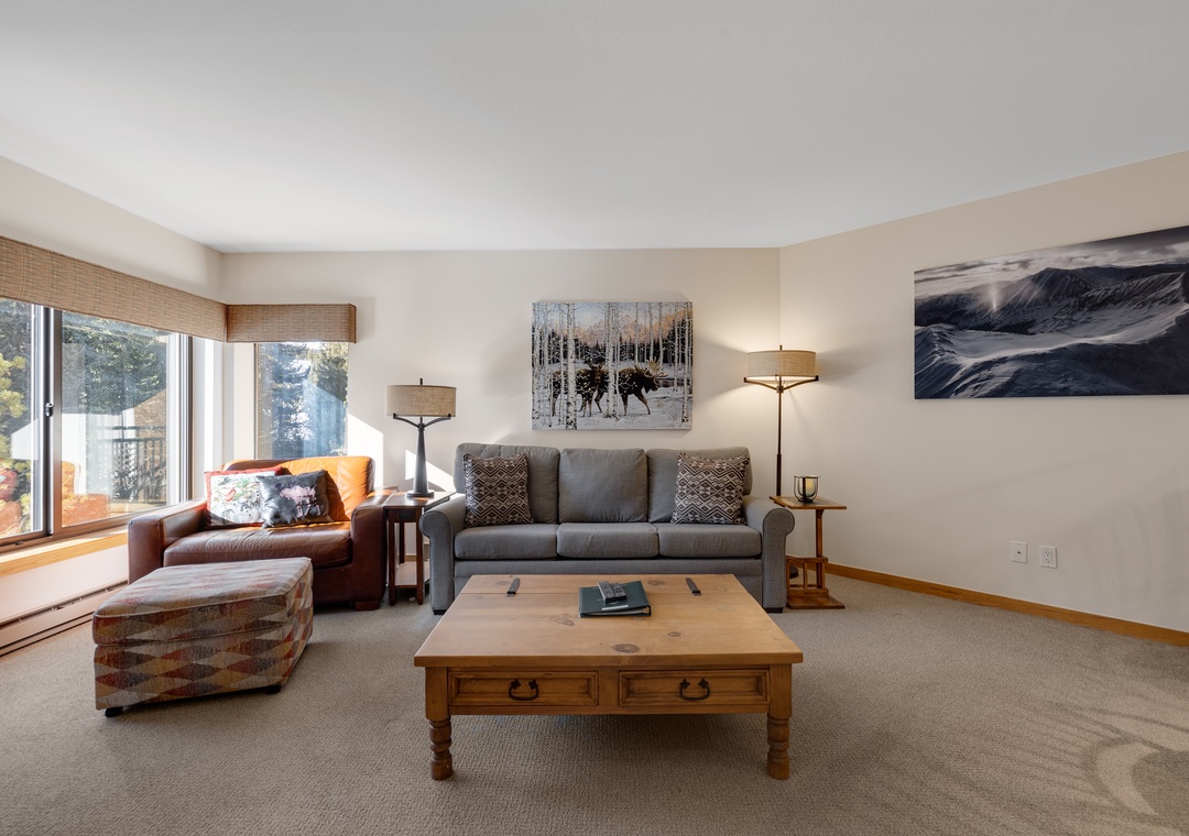 The Powderhorn condos are just steps across the stream from the high-speed 6-passenger Quicksilver lift at the base of Peak 9 and only two blocks to Main Street. Some of the amenities include a gas fireplace, washer/dryer, and underground garage parking. Guests enjoy the deck with amazing river and forested view. Also, stay connected with recently updated, free high-speed wireless internet.