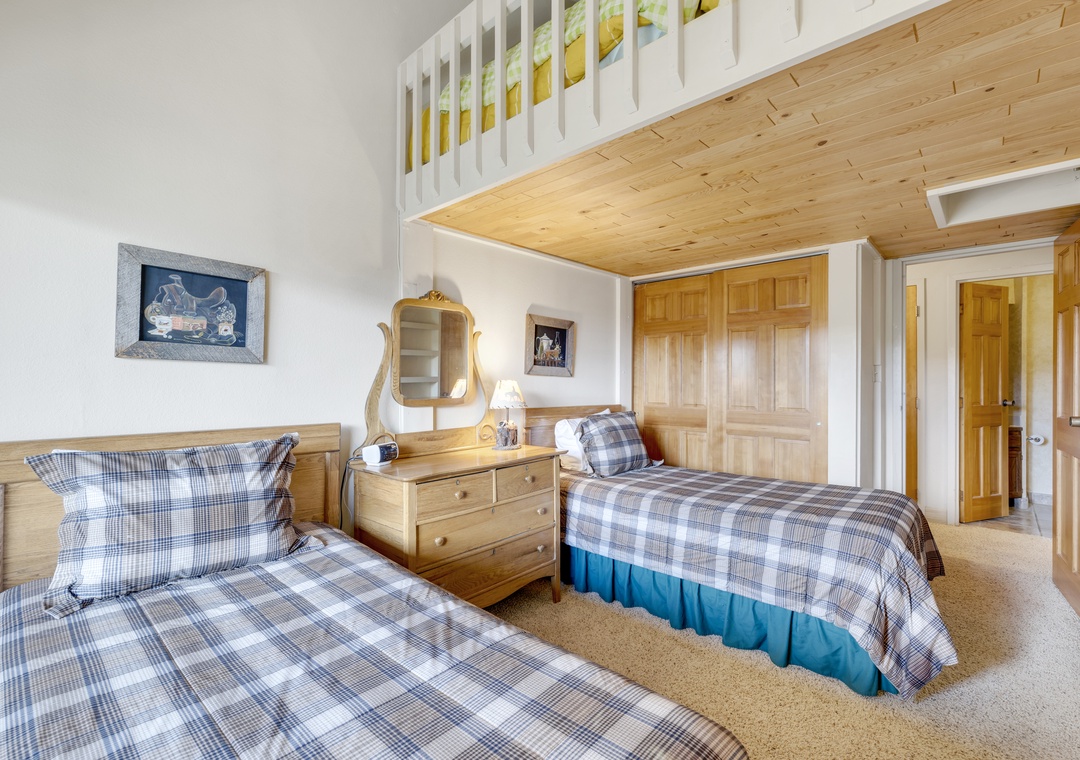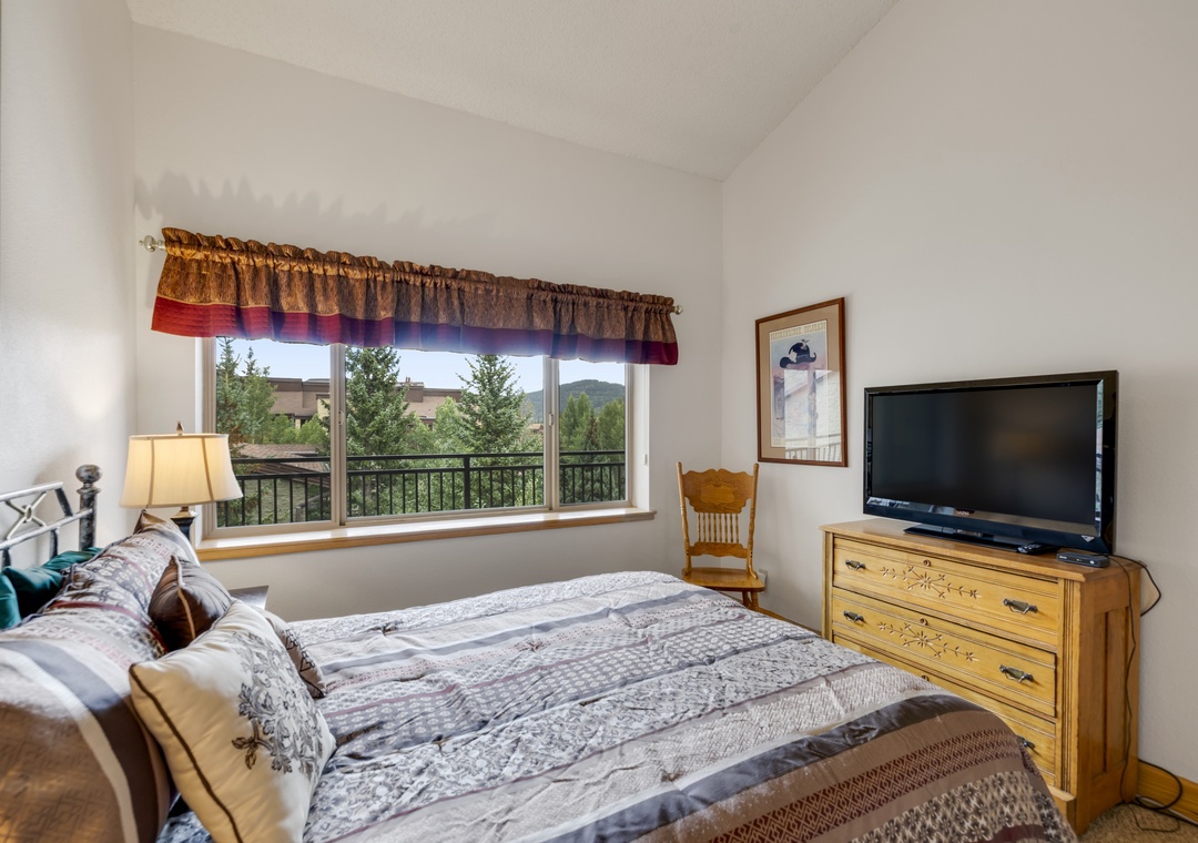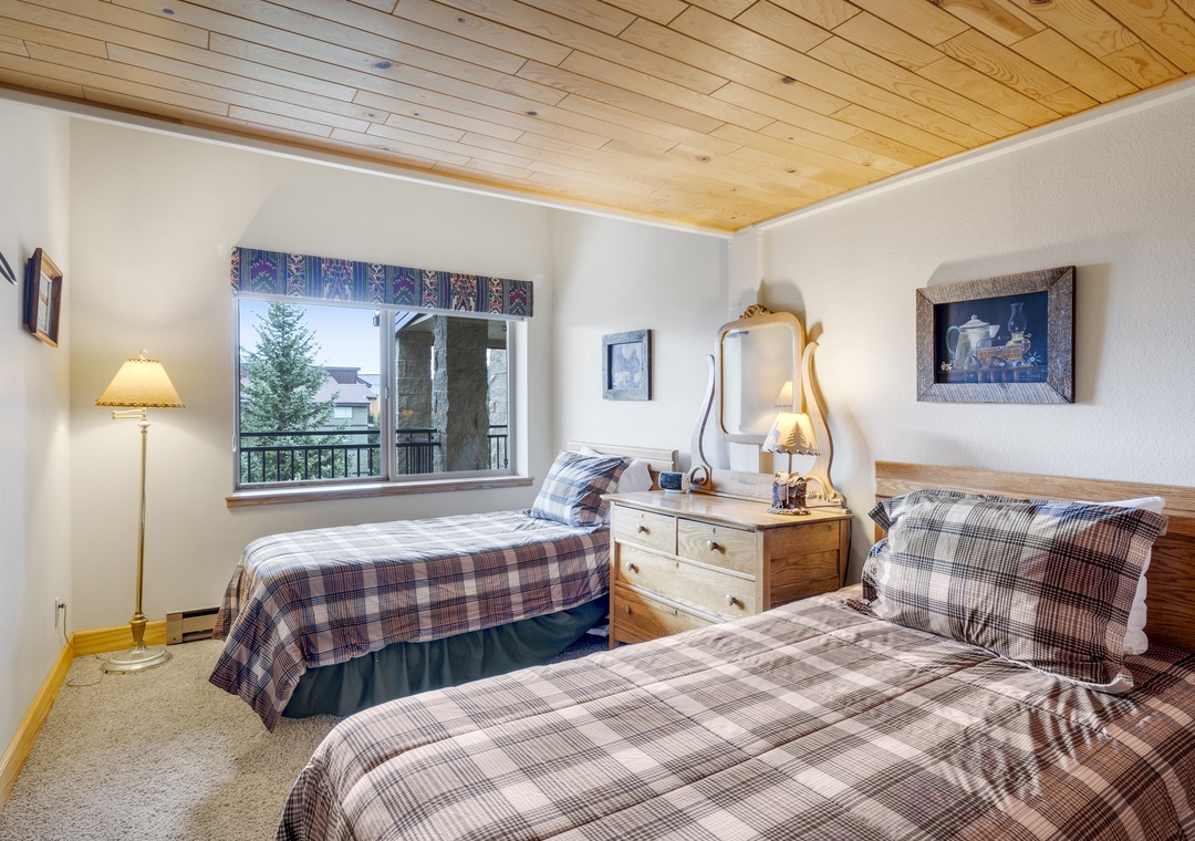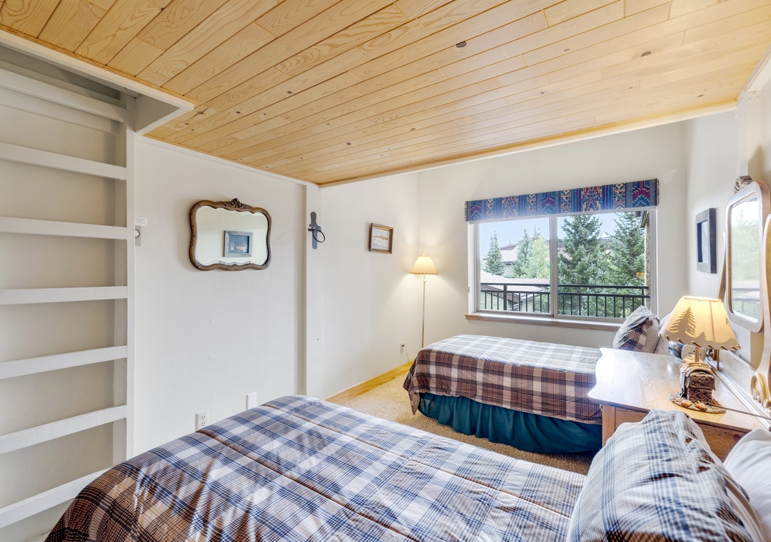 The Powderhorn condos are just steps across the stream from the high-speed 6-passenger Quicksilver lift at the base of Peak 9 and only two blocks to Main Street. This fourth floor Breckenridge condo offers a vaulted interior with plenty of natural light and a peaceful wooded view from both decks. Take a look at the interior pictures and see for yourself the beautiful decor and furnishings. Some of the amenities include a rock fireplace, washer/dryer, and underground garage parking. The third bedroom is complete with an ensuite bathroom with his and her vanities. Guests enjoy a deck and a nice, forested view. Also, stay connected with recently updated, free high-speed wireless internet.