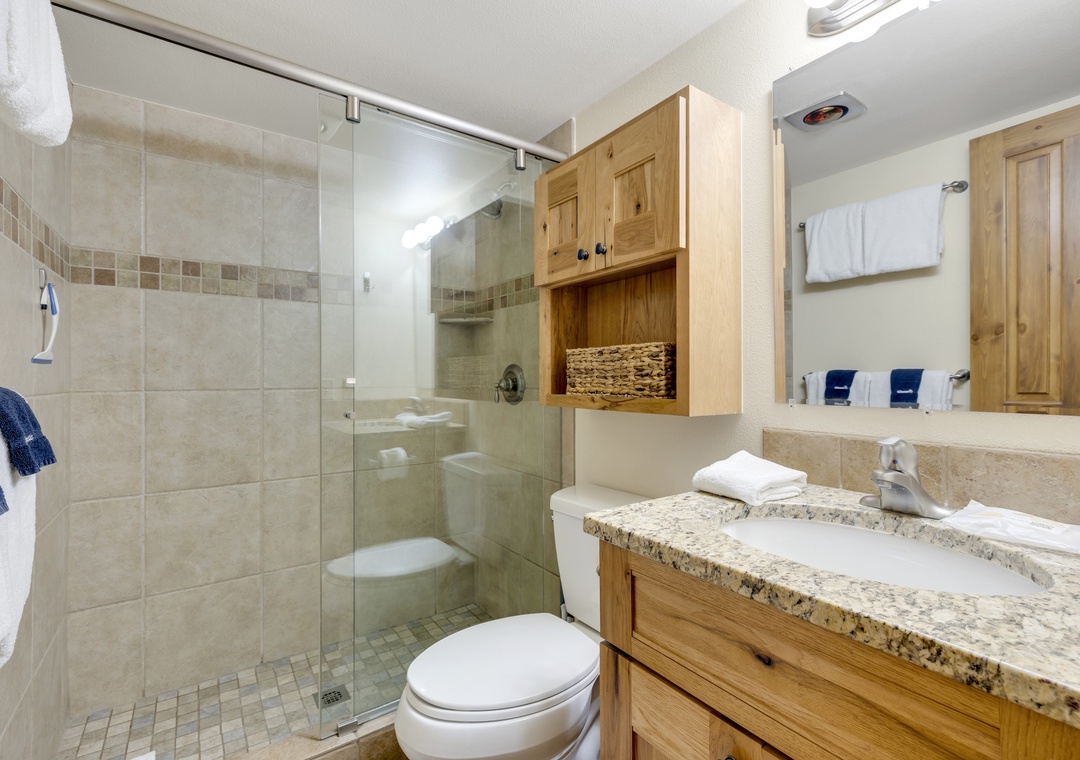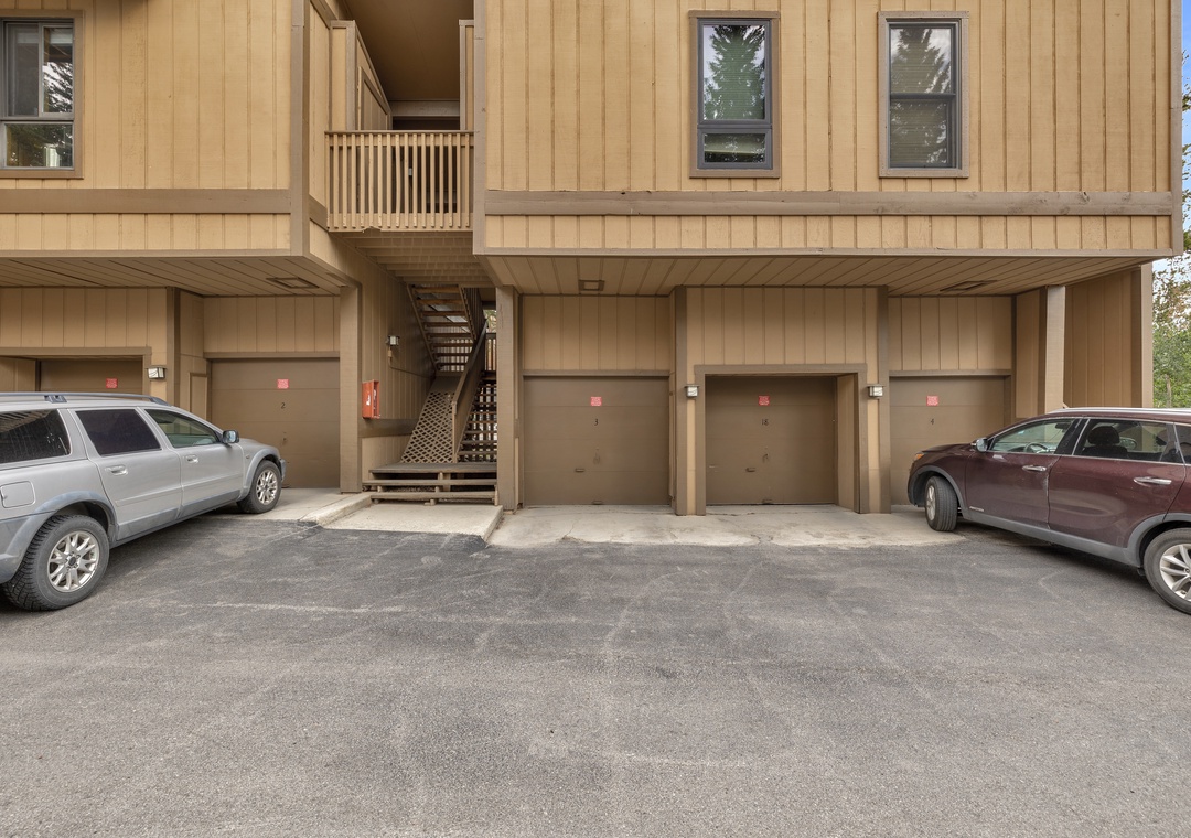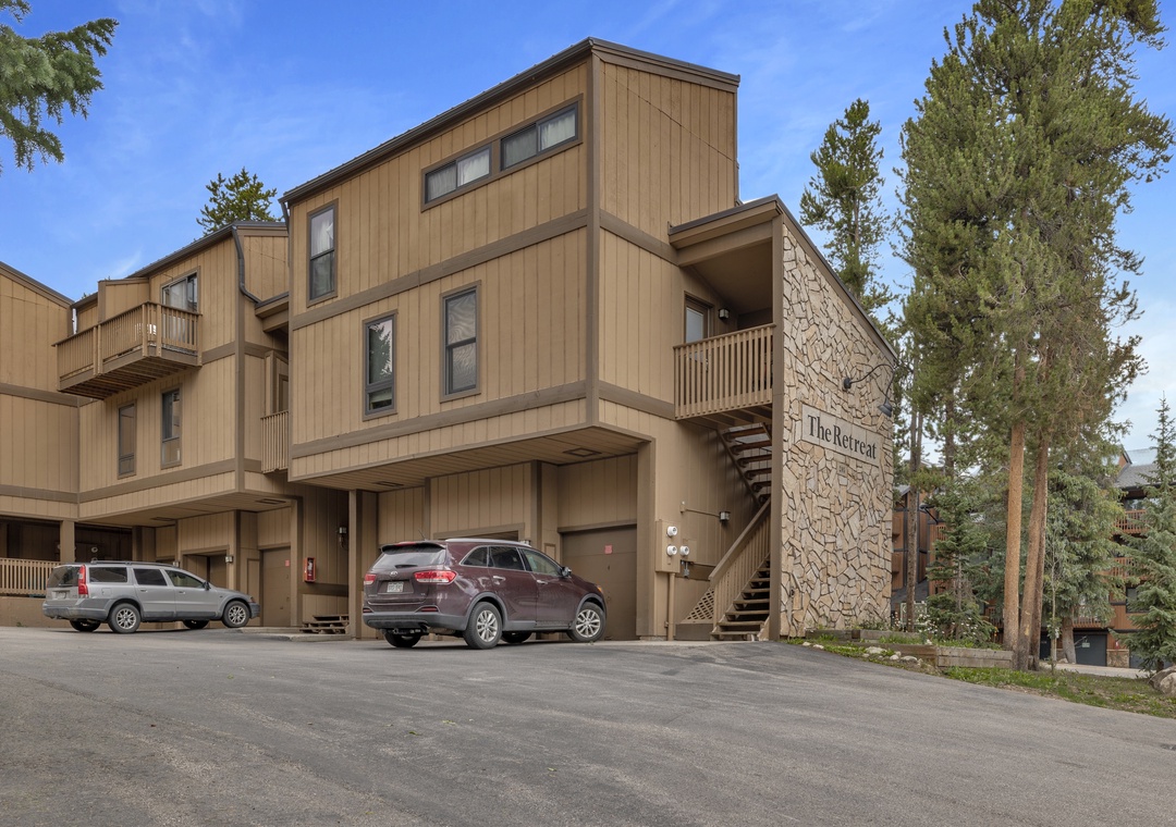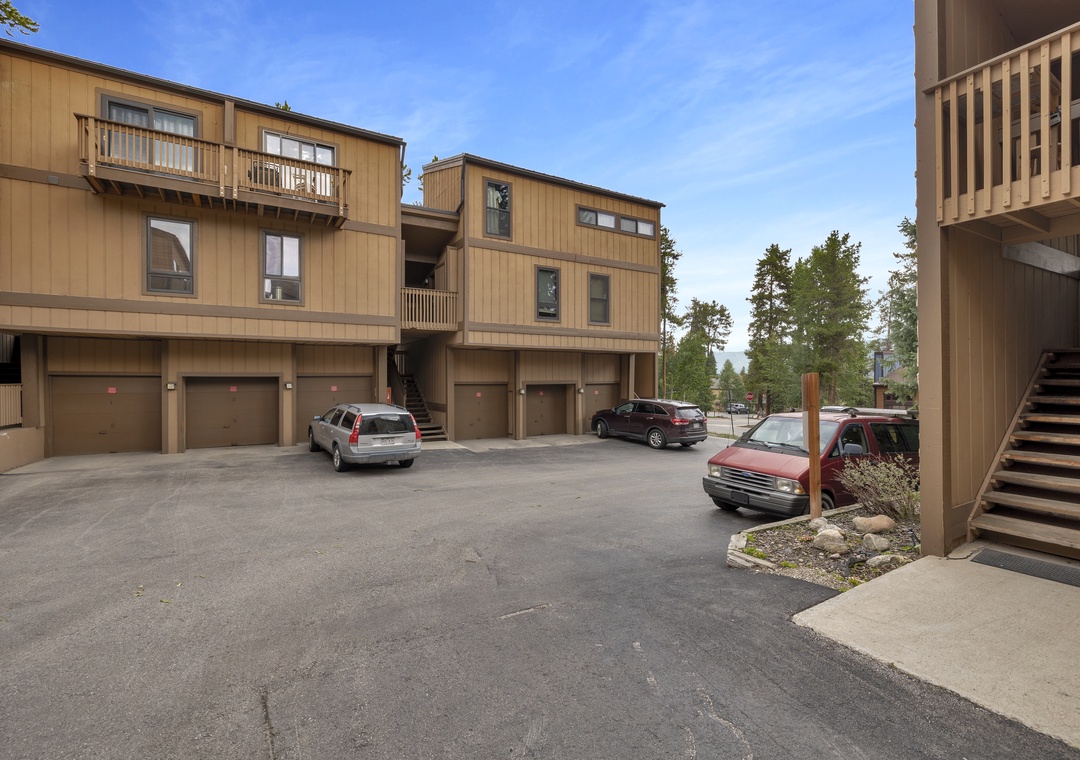 Just a 90-second walk to the Snowflake Chairlift, getting to the slopes is quick and easy. When your day on the mountain wraps up, you can ski down lower 4 O’Clock (check to make sure that run is open) back to Snowflake, or go a short way further and cut along the sidewalk. Main Street Breckenridge is only a few blocks away, with countless restaurants, boutique shops, coffee spots, and après-ski options within easy reach. A free shuttle stop is nearby, and the unit includes two guaranteed parking spots—one in the garage and one surface space.