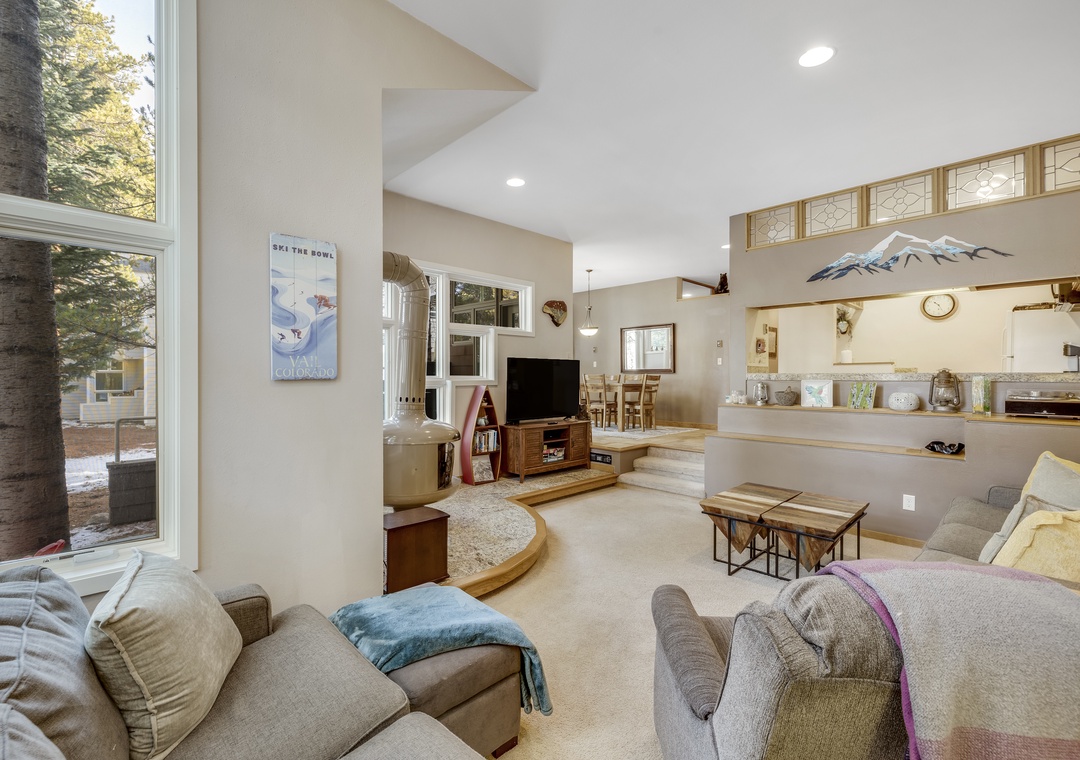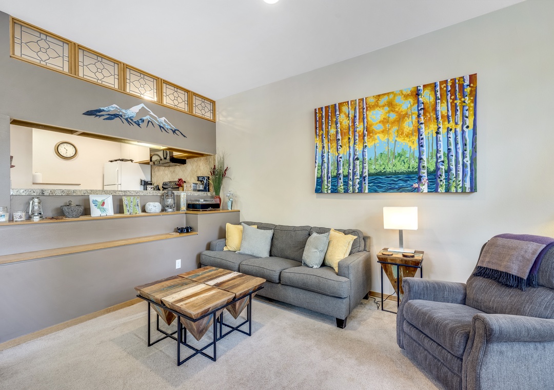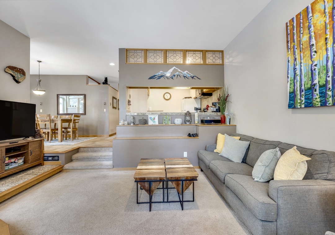 Welcome to Frisco Main Street Retreat — a cozy and inviting 2-bedroom, 2-bath home perfectly situated in the heart of Frisco. The open-concept living area features vaulted ceilings, a warm gas fireplace, and large windows showcasing mountain views. The fully equipped kitchen provides everything you need to prepare meals and gather with friends or family after a day outdoors. A private deck and a spacious yard invite you to relax and take in the crisp mountain air.