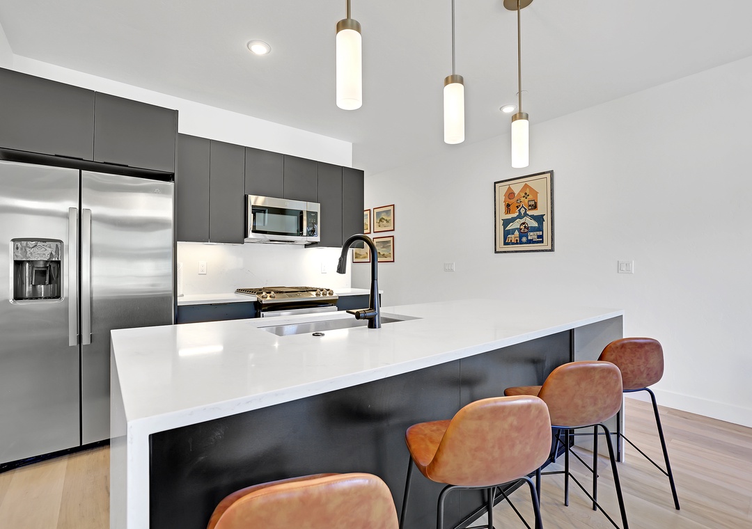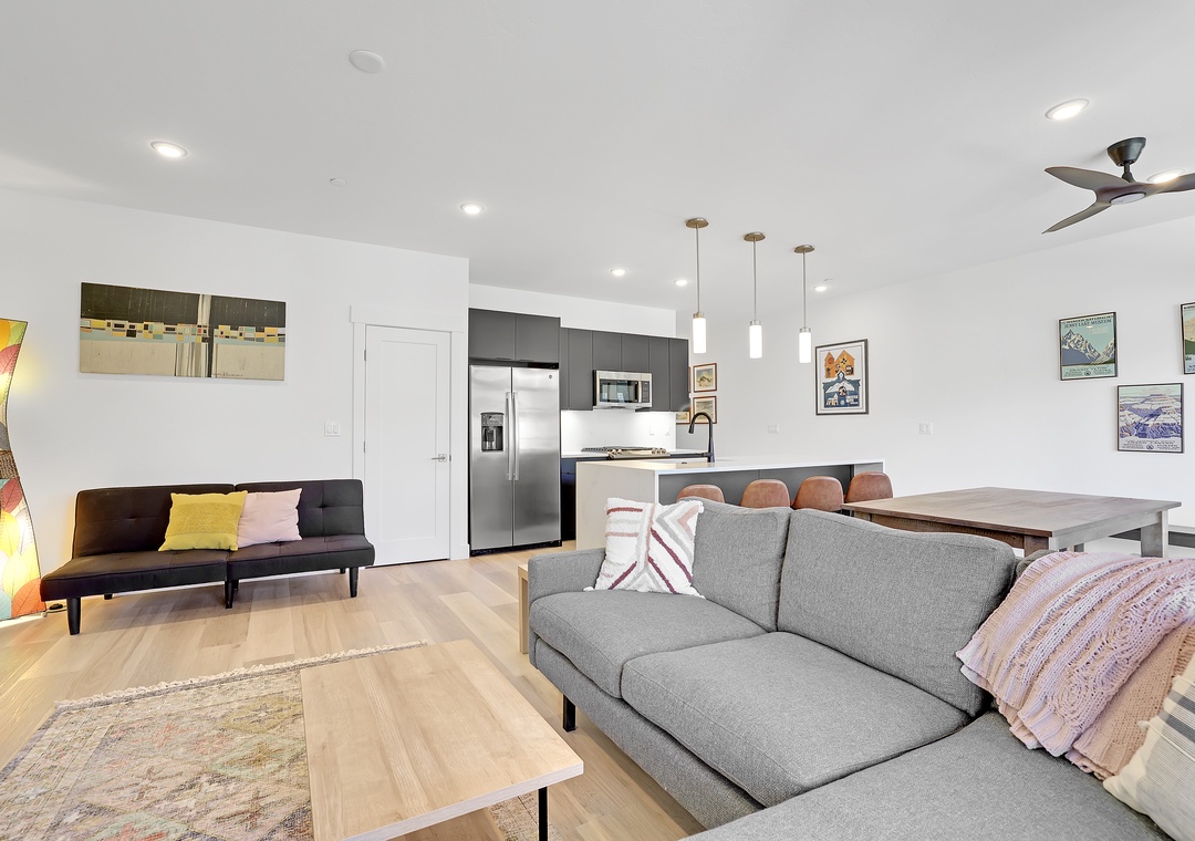 Additional amenities include an in-unit washer and dryer, high-speed WiFi to keep you connected, and convenient on-site parking. Plus a private ski locker for all your gear in the Winter!