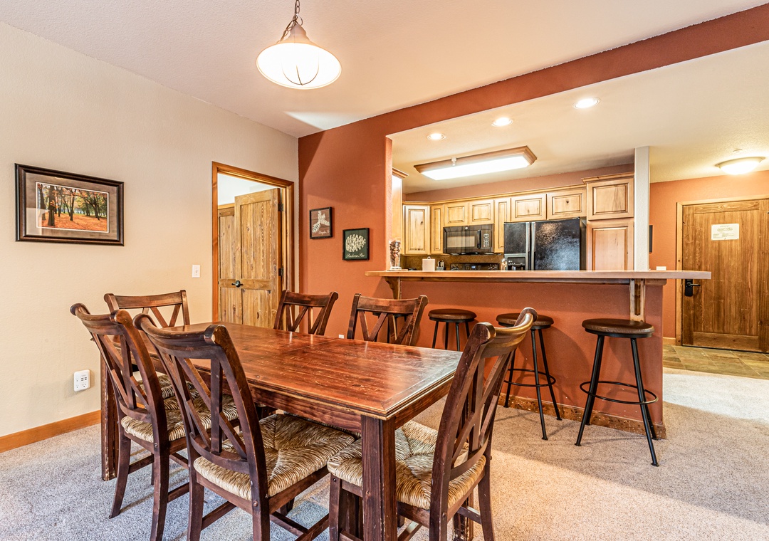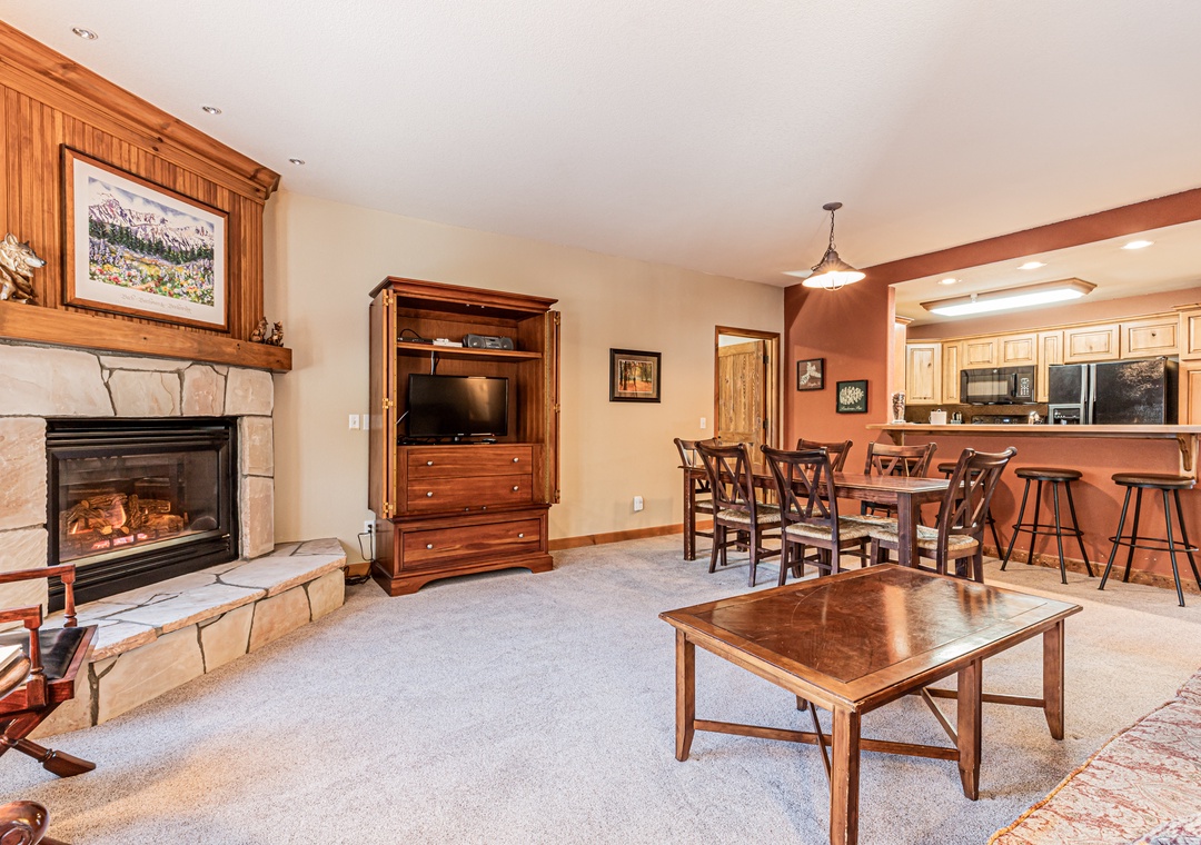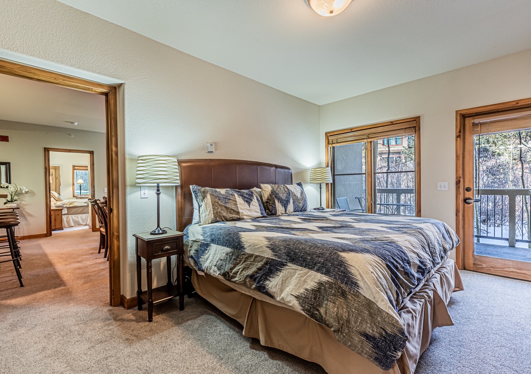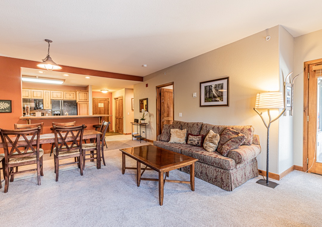 This three bedroom condominium sleeps 10 comfortably. It includes a spacious living area, private washer/dryer, and excellent amenities. The primary bedroom and second bedroom both have balconies great for views and to catch a breath of fresh mountain air. The lift is located steps from the complex making your commute to the slopes quick and easy. In the summer there are trails right outside the complex as well that take you up to the Peak 9 area with amazing views.