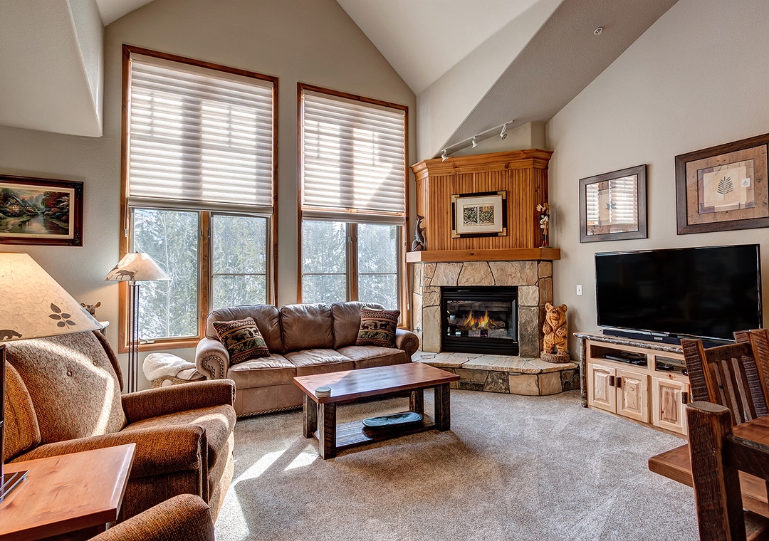 This corner unit is steps away from the base of the Snowflake lift and is surrounded by open space and wetlands. This second floor unit affords one of the quickest walks out to the Snowflake Lift. The living area windows offer a nice wooded view overlooking the chair lift, and provide plenty of natural light. The unit is finely decorated and has all the amenities, including a spacious floor plan with in-floor radiant heat, complimentary Wi-Fi, gas fireplace, washer/dryer, TV and DVD player, two private decks and much more. Underground heated parking, fitness room, shared gas grills, private ski storage and elevator access add to the ease of this appealing unit. After a hard day on the slopes or on Main street, relax in the indoor/outdoor hot tubs.