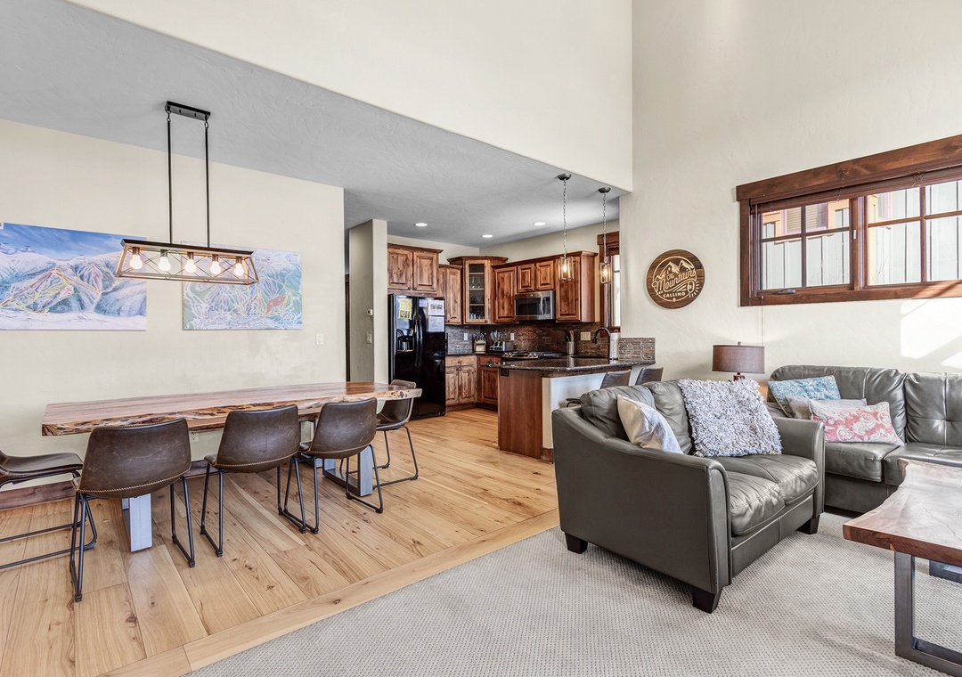 Enjoy panoramic mountain views from this nicely furnished 4 bedroom 4.5 bathroom townhome. The open floor plan, high ceilings and ample windows allow for lots of natural light. Additional features include a gas fire place, private deck, washer/dryer in unit and single car garage. Nestled under Buffalo Mountain, the Gore Trail is only moments from the local trails in the surrounding wildernest area.