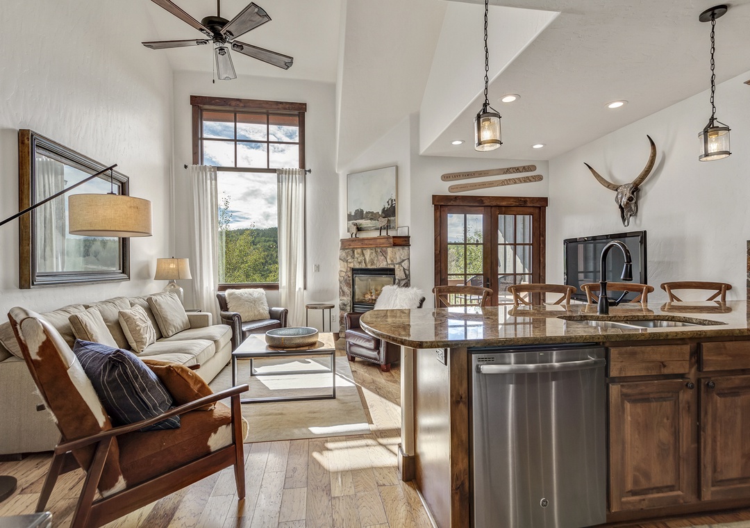 This luxury residence is as inviting as it is spacious. The multi-level design boasts more than 2,000 sq. ft. of space, ensuring ample room for everyone! As you enter on the main level, you are ushered from the entry into main dining, living and kitchen areas. The mountain modern decorative accents impart both luxury and comfort to the space. The large windows allow for ample natural light while the vaulted ceilings create a sense of spaciousness. Cozy up to the gas fireplace, or step onto the balcony to breathe in the crisp mountain air. The large kitchen is fully stocked with everything you need to make a quick meal or host a large holiday gathering. It is equipped with stainless steel appliances and granite counter tops.