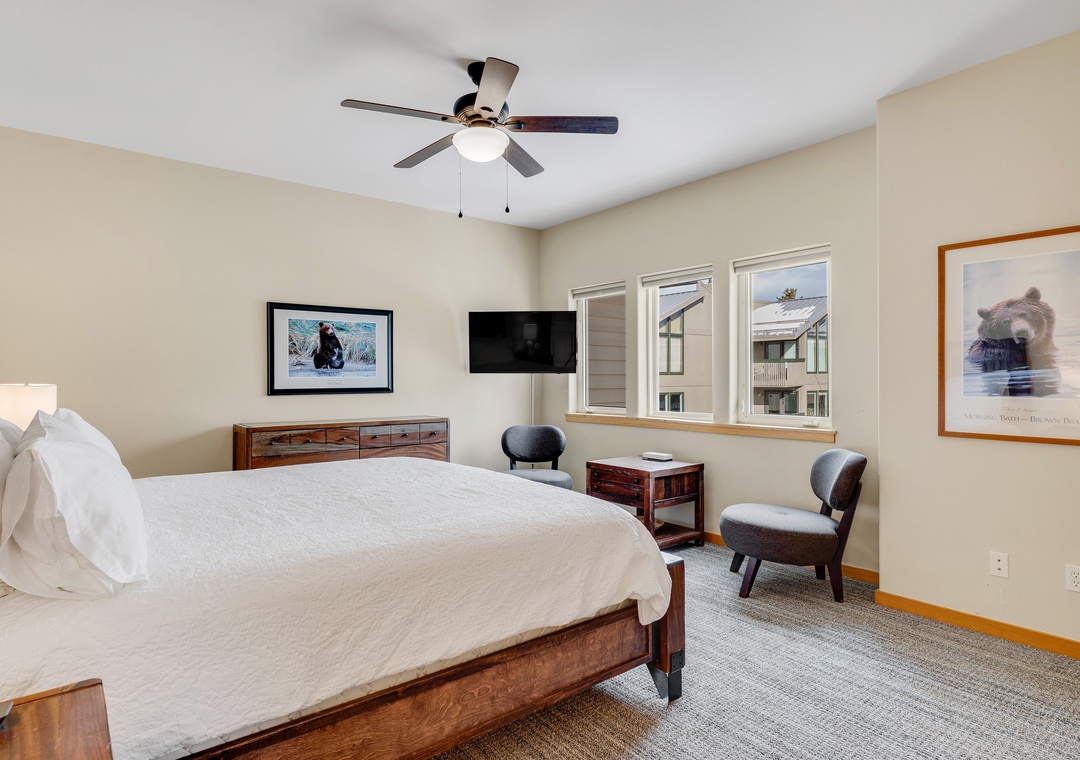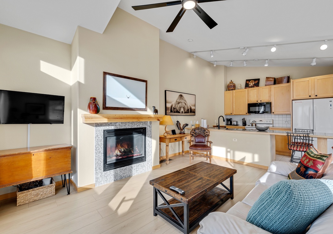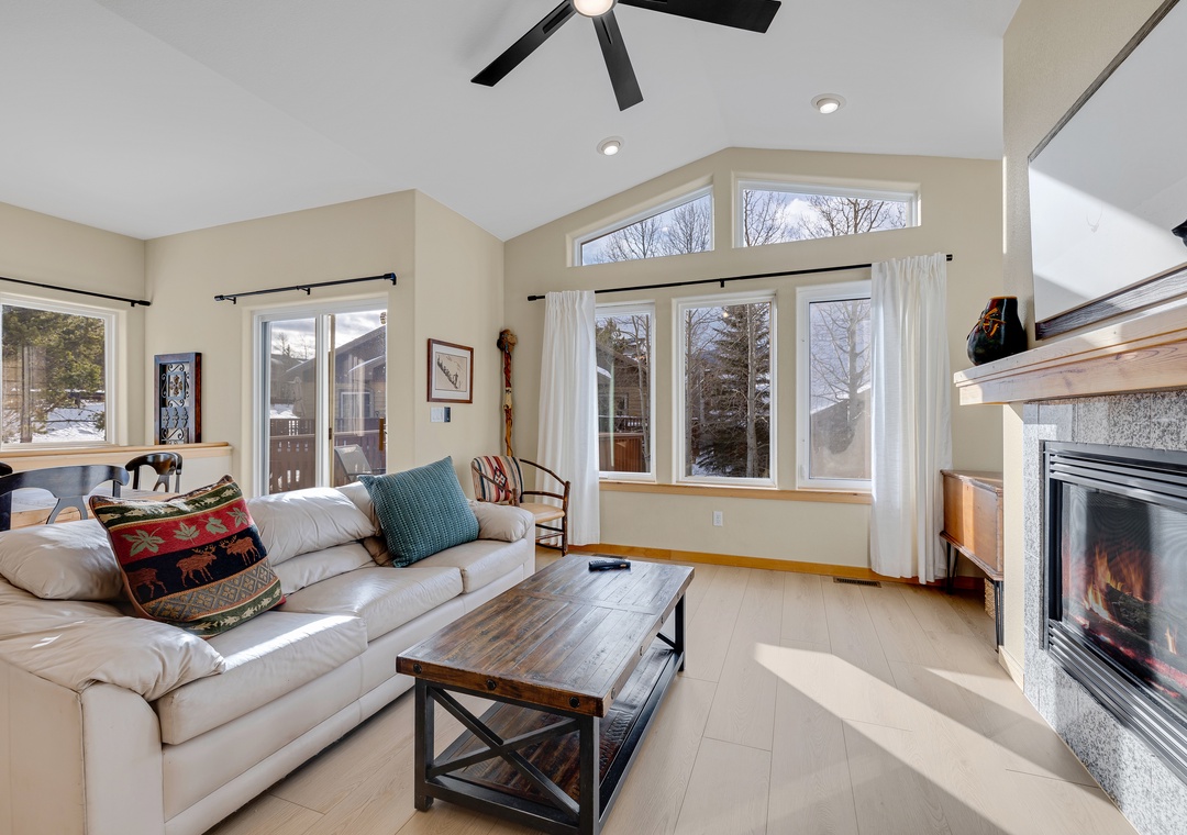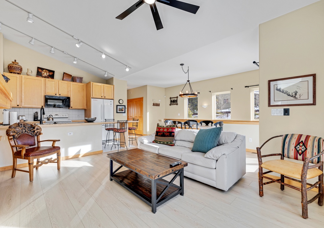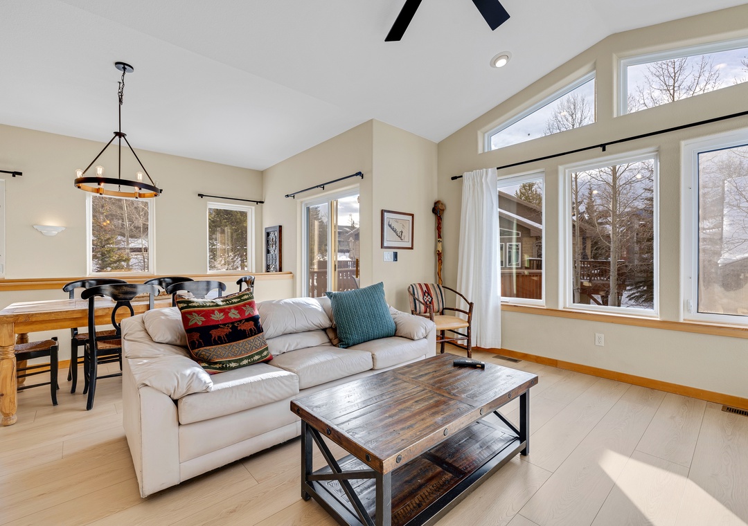 The main living area is flooded with natural daylight and offers an open, airy layout—perfect for entertaining, relaxing, and spending quality time with family and friends after a day of mountain adventures.