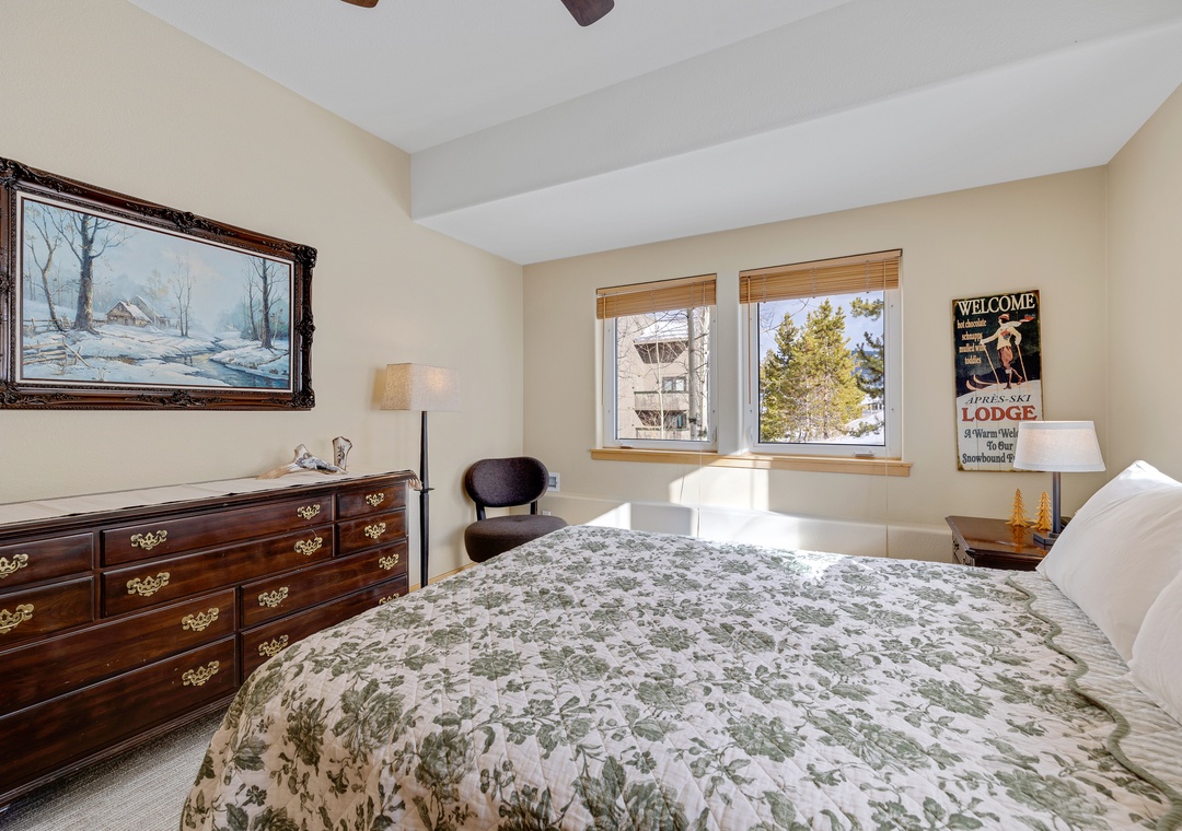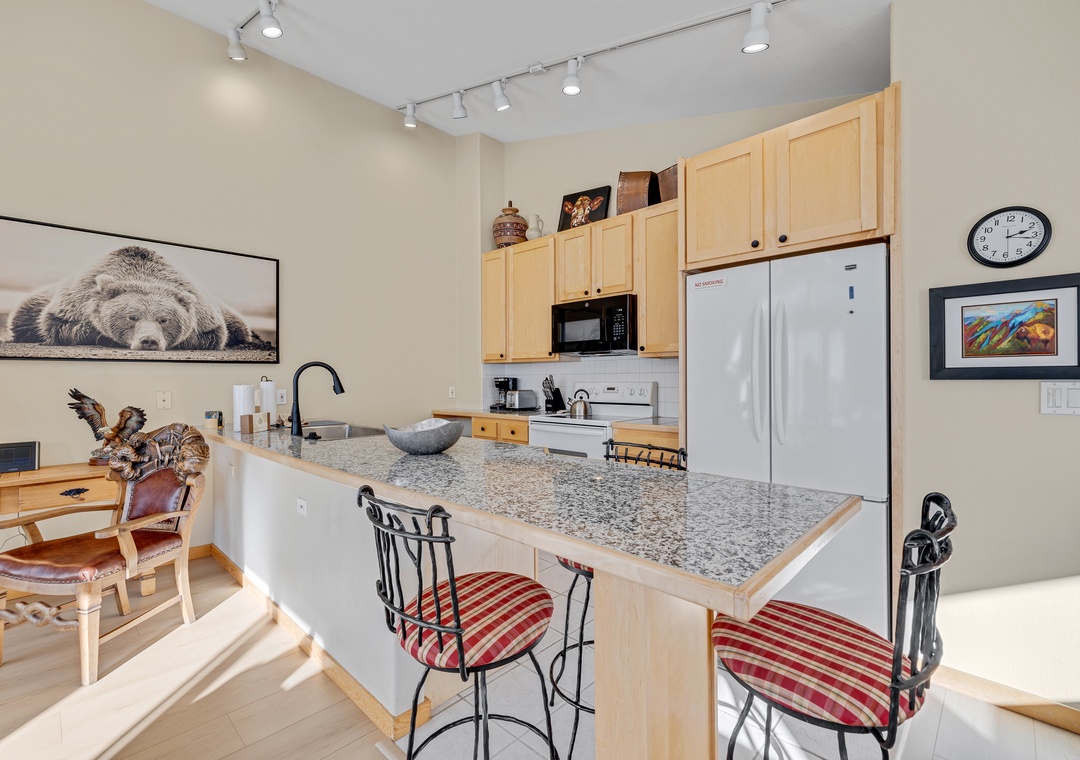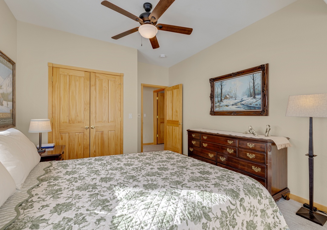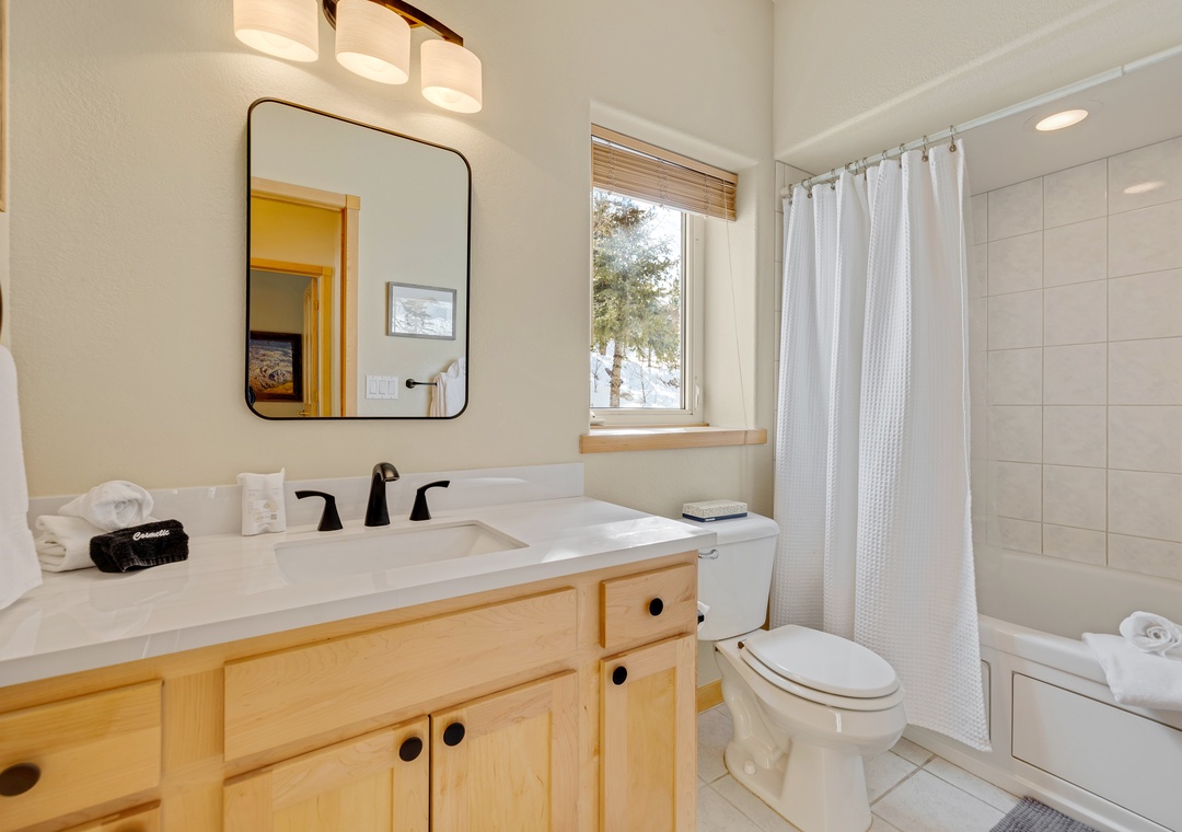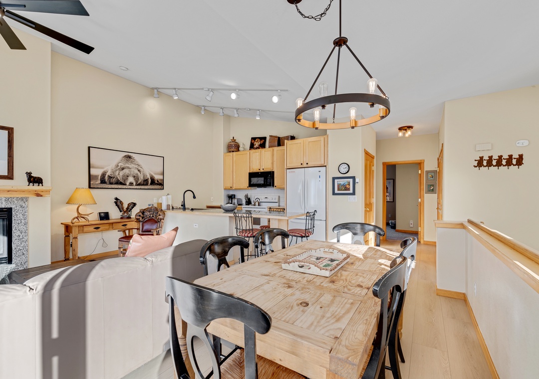Running Bear Retreat is a welcoming mountain getaway designed to be your perfect home base in Silverthorne, CO. The open-concept living area boasts abundant natural light and plenty of room to gather, making it ideal for entertaining or unwinding after a full day outdoors. Thoughtfully designed with comfort in mind, the space offers a cozy yet spacious mountain ambiance that feels both relaxing and functional. With five individual beds, the layout accommodates a variety of group dynamics while ensuring everyone has their own comfortable place to rest. Whether you’re sipping coffee in the morning sunlight or sharing stories in the evening, this home invites connection and relaxation.