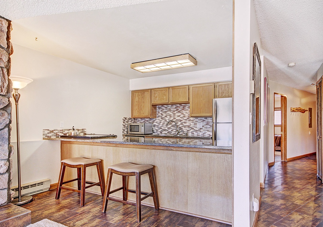This spacious condo is complete with stunning views overlooking Park Avenue from the private deck and is newly remodeled with custom tile flooring, stainless steel appliances and custom bathrooms. At this Sawmill Creek condo, take a dip in the two indoor hot tubs, utilize the shared grills and get to park in a covered parking space. Just outside the complex is the nearest bus to take you to your next skiing destination. For your convenience, all of our Sawmill Creek condos include access to our on-site operations office for maintenance questions/needs, supplies such as towels, or any other needs during your stay. Additional amenities include Free WiFi, covered parking and in-unit washer/dryer.