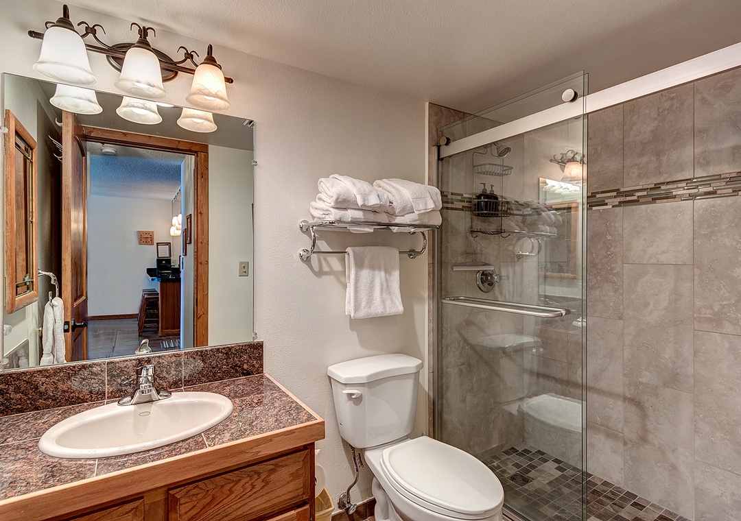 Also - recent upgrades include new paint, new ceiling fans, new bathroom fixtures, new furniture including American Leather sleeper sofa with Tempur-Pedic mattress, new dishes and cutlery, and new patio furniture! The Sawmill Creek complex also offers a covered parking space, two indoor hot tubs, shared grills on the patio as well as a fantastic location. Just 20 yards from the bottom of the Four O’clock run and a block to historic Main Street, this condo is situated perfectly. Take the shuttle in front of the building to the nearest chair lift or other adventure in town.