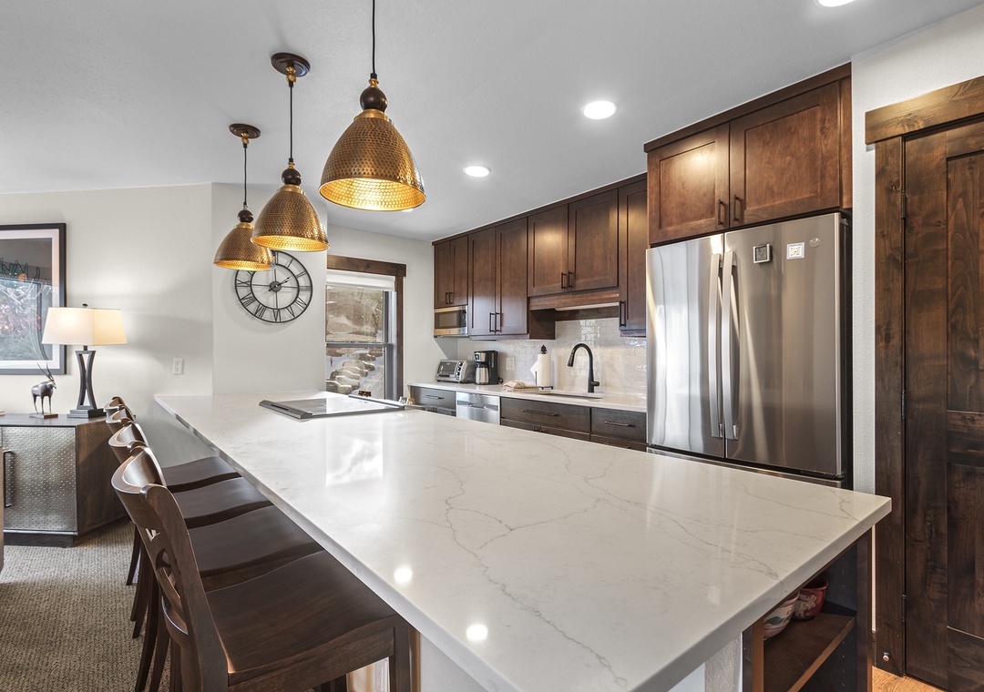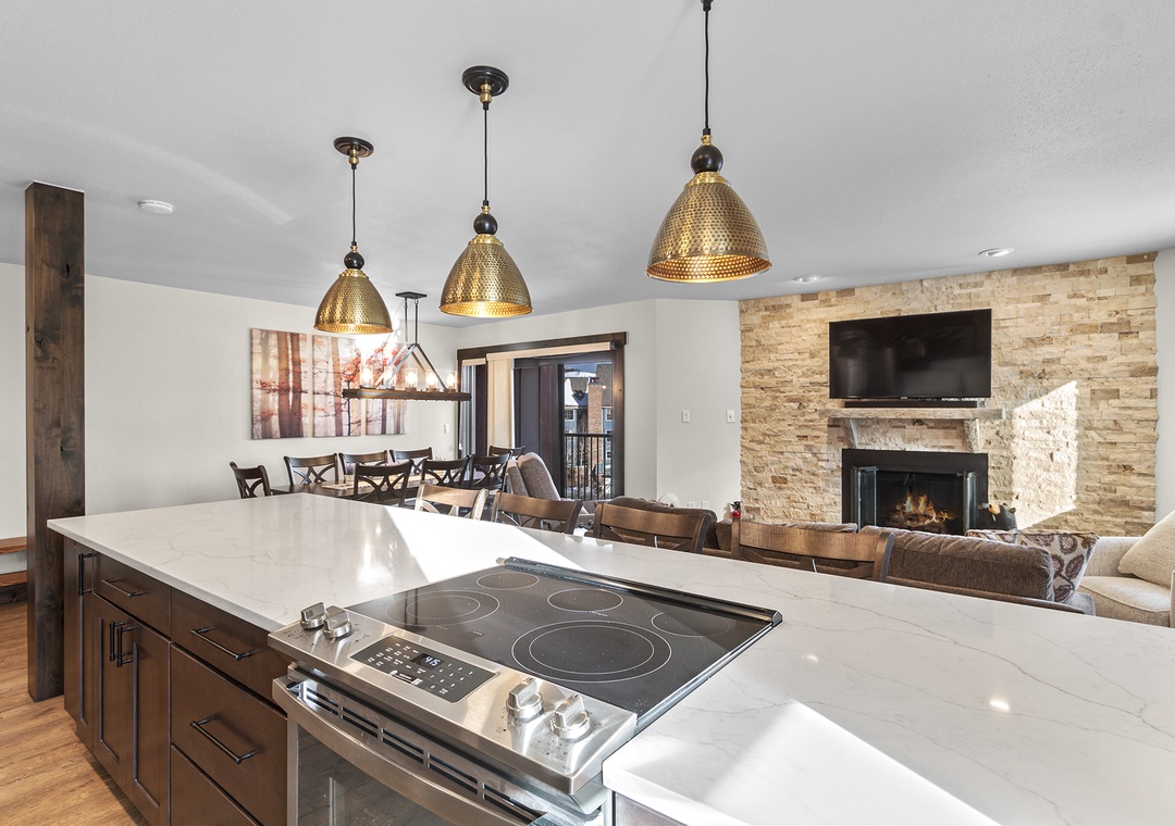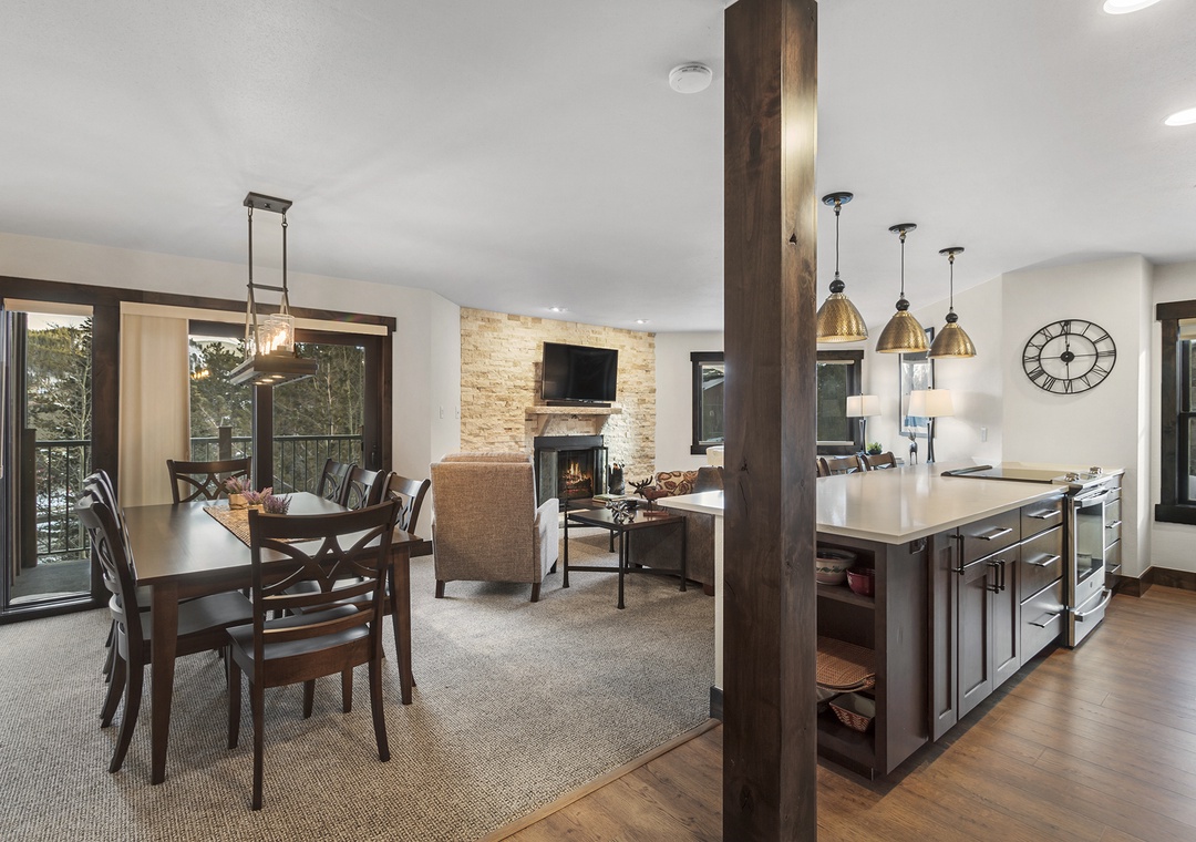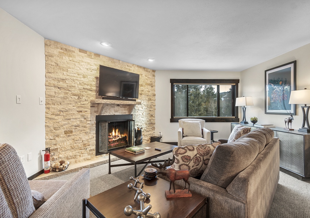 Curl up by the fireplace in the evenings, creating a cozy ambiance that adds to the mountain charm of the condo.
