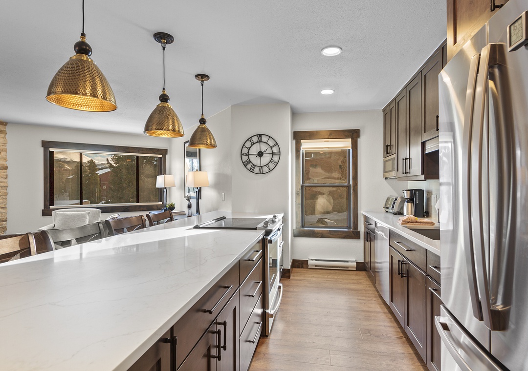 We arrived on Thursday before the holiday weekend and glad we did, the town as well as the condo building got a lot more crowded by Saturday. The unit was clean and recently remodeled, all new appliances as well. The kitchen was good for cooking breakfast, we went out every night for dinner. You can ski back to the unit by taking 4'oclock run the whole way down, but you will need to take the bus (stop is right out front of the building) or walk to the gondola (5 to 10 min walk). One annoyance that needs to be addressed, the ceiling fan / light fixture in both bedrooms seem to be wirelessly controlled. When you press the button on the wall in one room, it turns on/off both rooms. The lights also turn off automatically after about 30 minutes.- Reviewed On: 1/16/2024