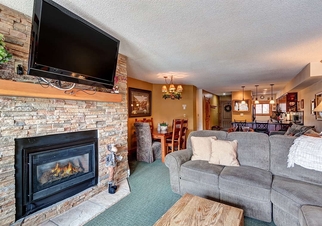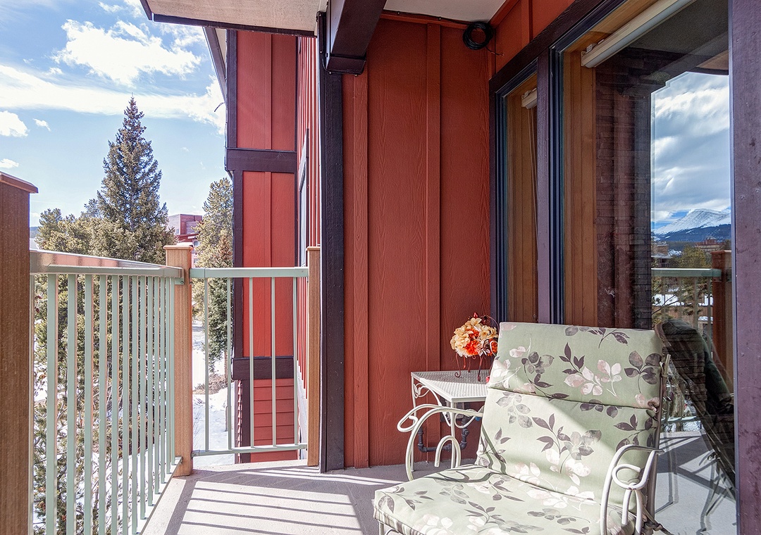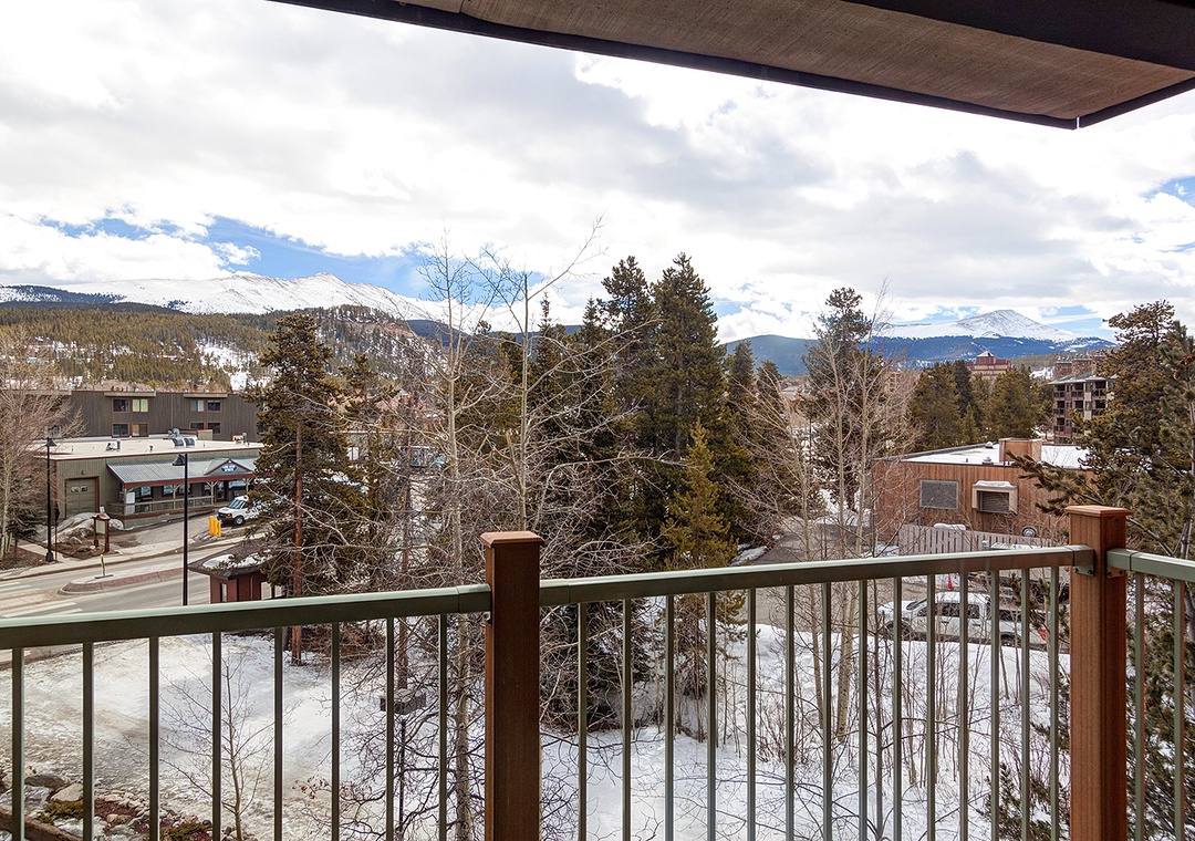 This fantastic third floor Breckenridge condo gives you a great view of town with a mountain backdrop. Recently renovated and stocked with a new large flat screen TV, this two bedroom unit gives you the pleasures of watching your favorite movie while relaxing by the fire. The new furnishings continue with the brand new appliances, granite counter tops and bathrooms. Enjoy being 20 yards from the bottom of the Four O'clock ski run, and just a block to historic Main Street. This location is convenient and easy to get around. Each unit has free Wi-Fi, washer and dryer, a covered parking space, as well as access to the complex's two indoor hot tubs and shared grills on the outdoor patio.