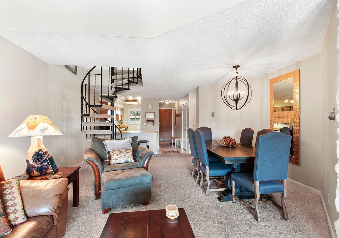 Located just one block from Main Street and within 20 yard of the base of the Four O'clock run, this delightful two bedroom plus loft / 3 bath condo is an affordable choice among Breckenridge accommodations. The fourth (top) floor location affords a vaulted interior, a gas fireplace and nice mountain views from your private deck. The building is furnished with a covered garage, shared gas grills, one covered parking space, indoor hot tubs and an elevator. Recently redecorated for a modern mountain fee. For your convenience, all of our Sawmill Creek condos include access to our on-site operations office for maintenance questions/needs, supplies such as towels, or any other needs during your stay.