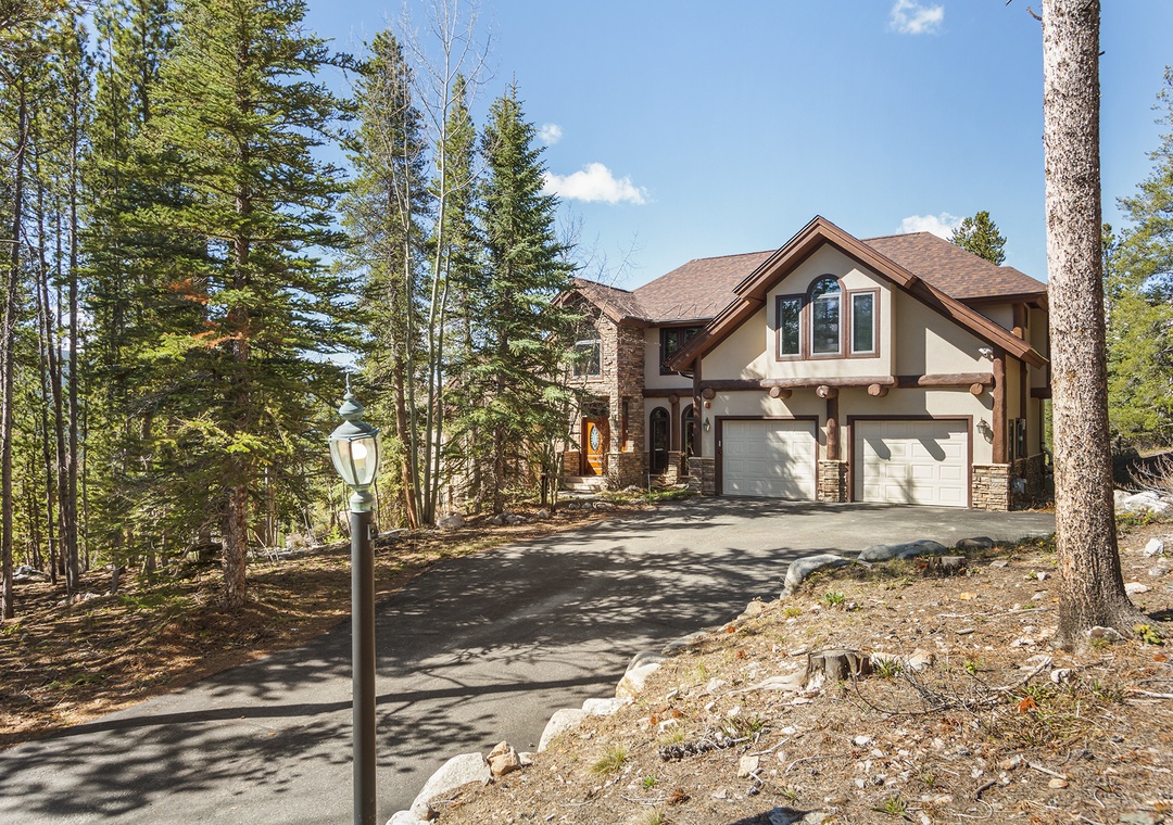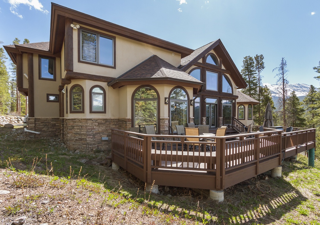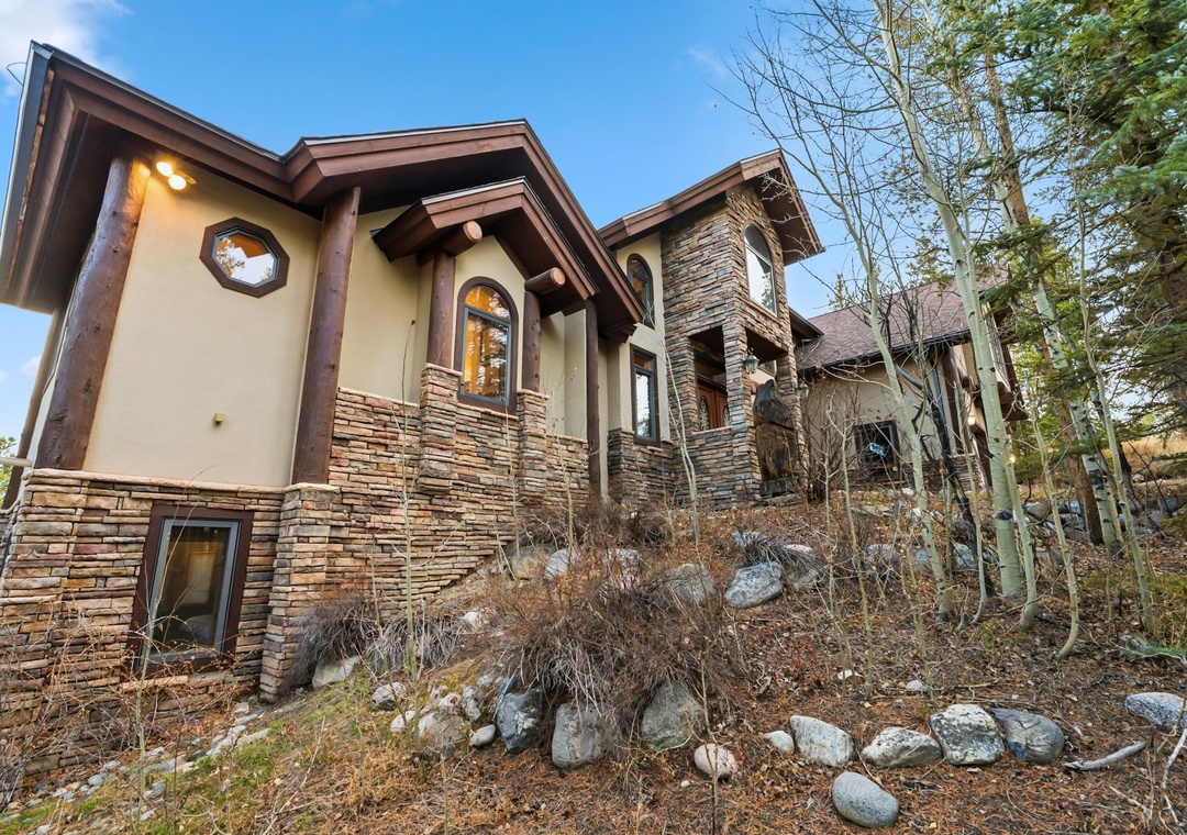 Upon arrival, you'll be captivated by the picturesque surroundings and the grandeur of this luxurious vacation home. The exterior boasts a classic alpine design, complemented by rustic stonework and expansive windows that frame awe-inspiring mountain views.