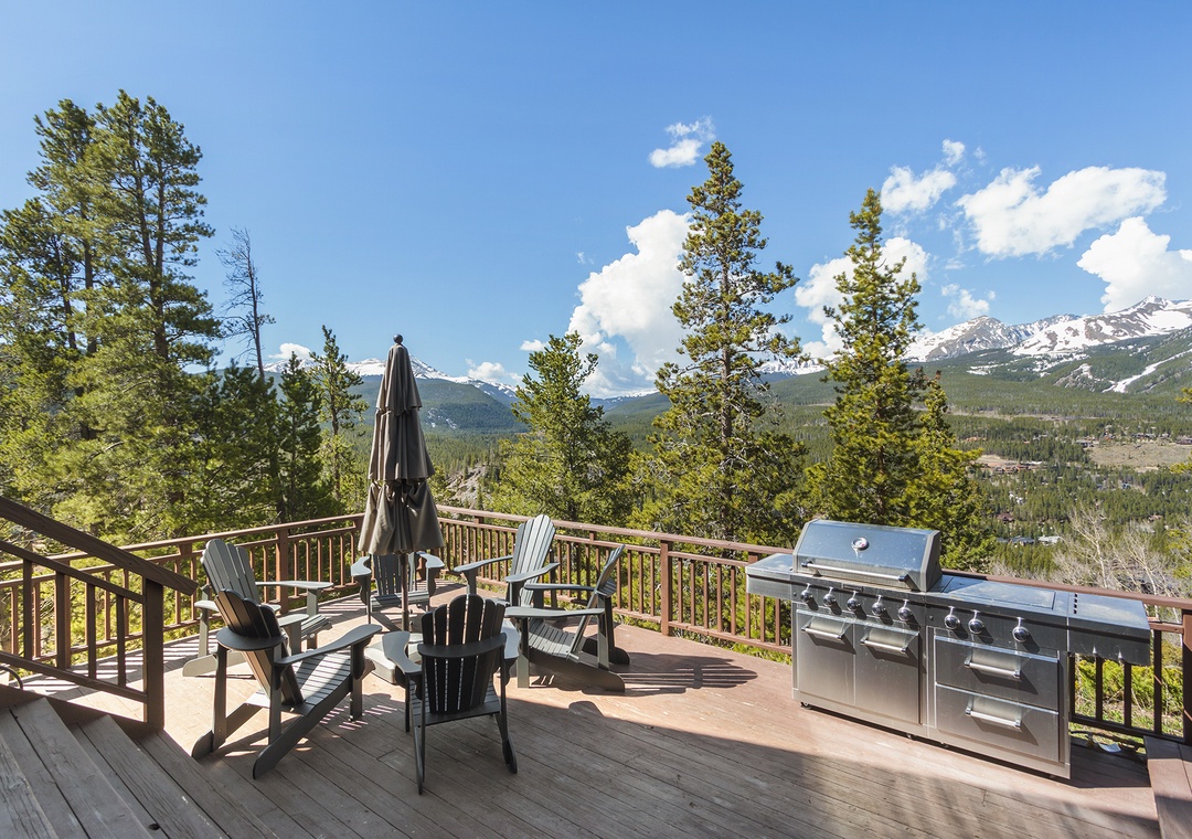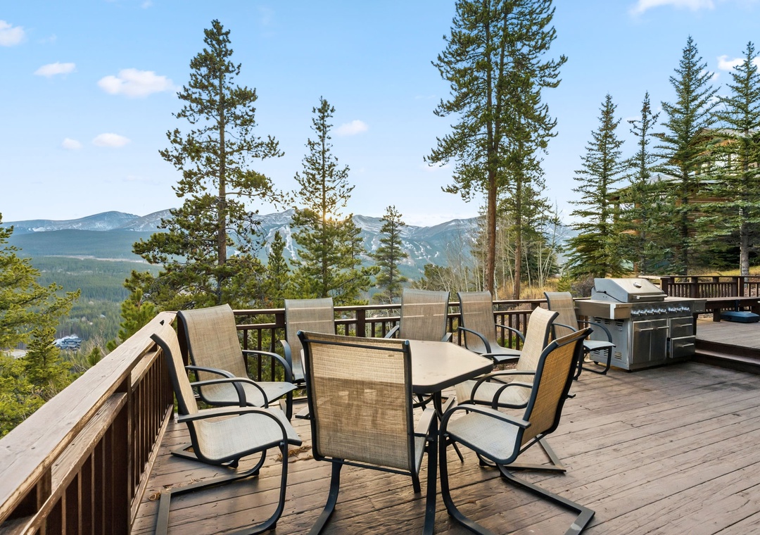 Outside, the expansive deck beckons you to bask in the fresh mountain air. Savor your morning coffee while admiring the awe-inspiring vistas or unwind in the private hot tub as you watch the stars illuminate the night sky. For those seeking outdoor entertainment, the property provides easy access to hiking trails, skiing slopes, and a plethora of recreational activities.