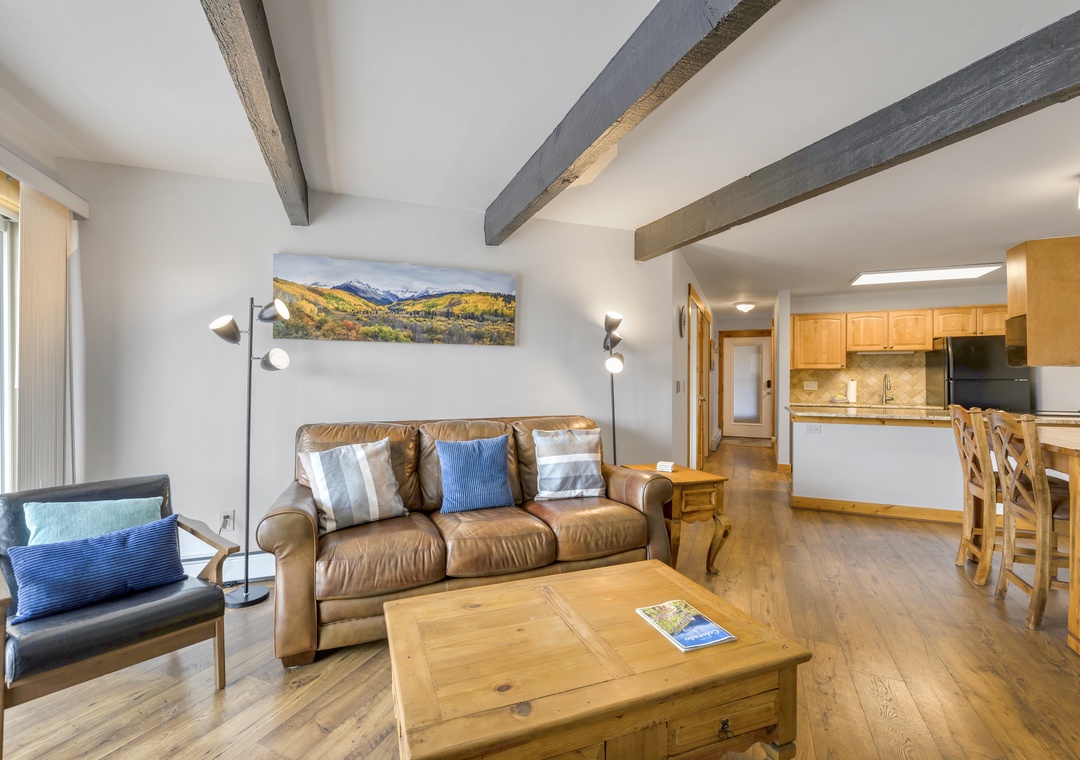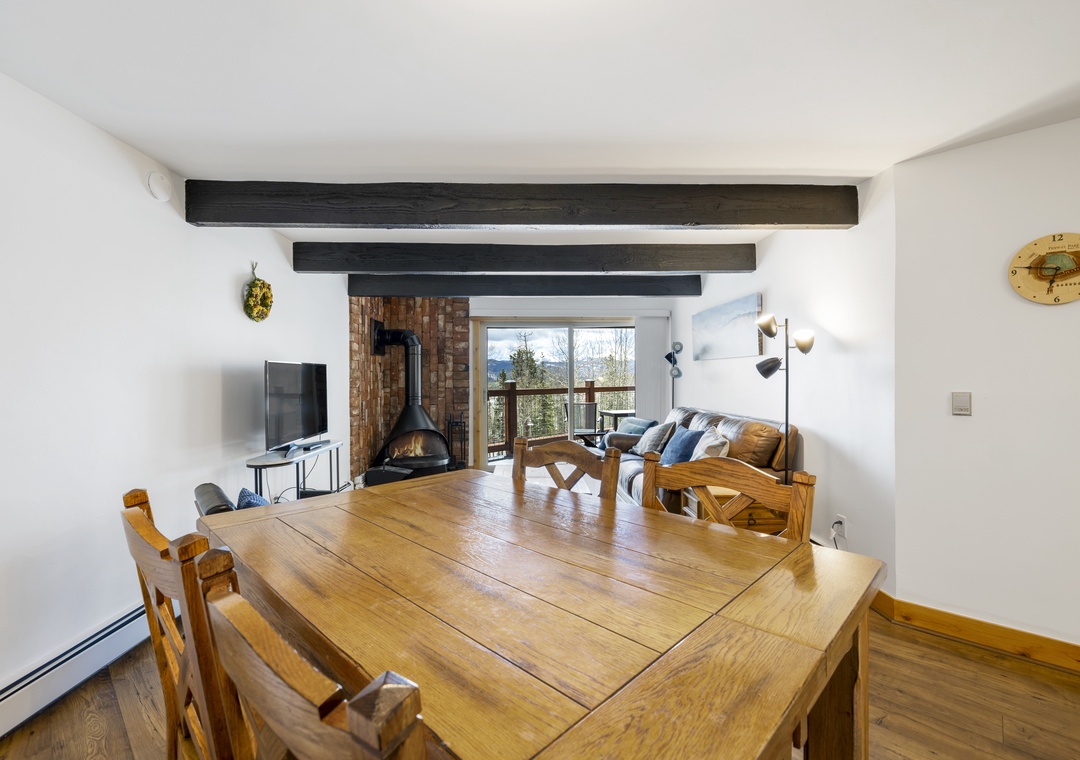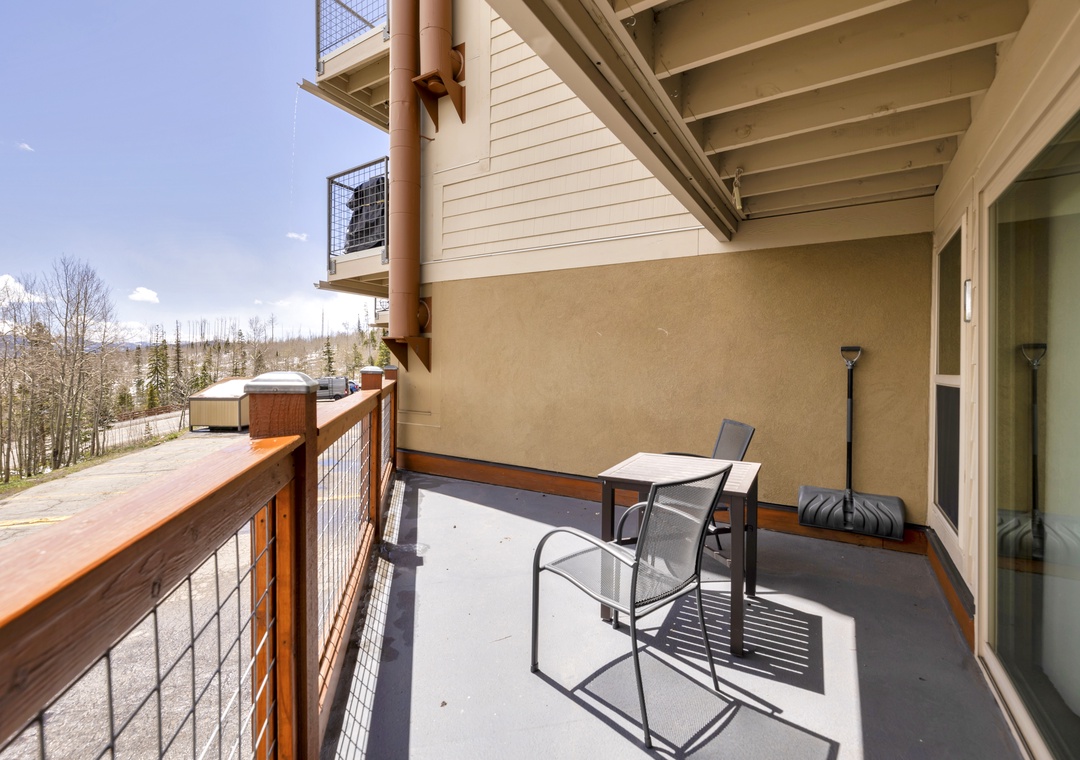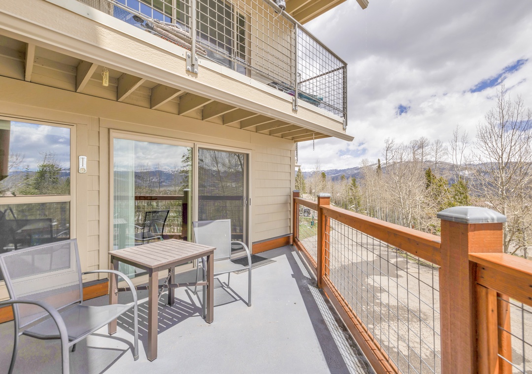 As you step inside, you'll be greeted by a warm and inviting atmosphere. The open-concept design of the living area creates a spacious and comfortable environment for you and your guests to relax and unwind. Step outside onto your own private balcony right off the living room area to take in the breathtaking views of Lake Dillon, Keystone, and A-Basin. Outside, you'll find a spacious balcony area, perfect for enjoying the fresh mountain air and stunning vistas. Whether you're firing up the grill for a barbecue or simply lounging in the sun, this outdoor space is an excellent spot for relaxation and entertainment.