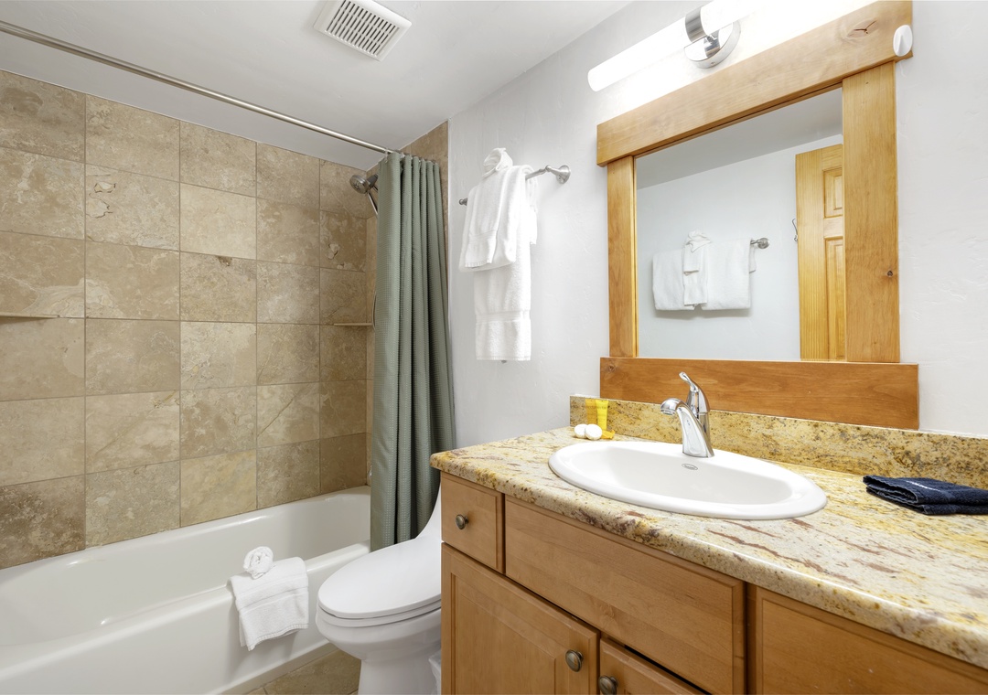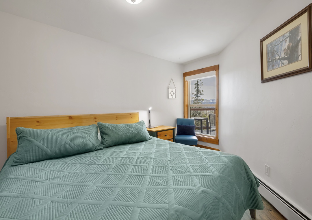 This rental property boasts two bedrooms and a full bathroom, each bedroom is thoughtfully designed to provide a restful night's sleep and plenty of space. The primary suite offers a plush king-sized bed and a breathtaking window view of the surrounding mountain area. The additional bedroom features a comfortable queen-sized bed.