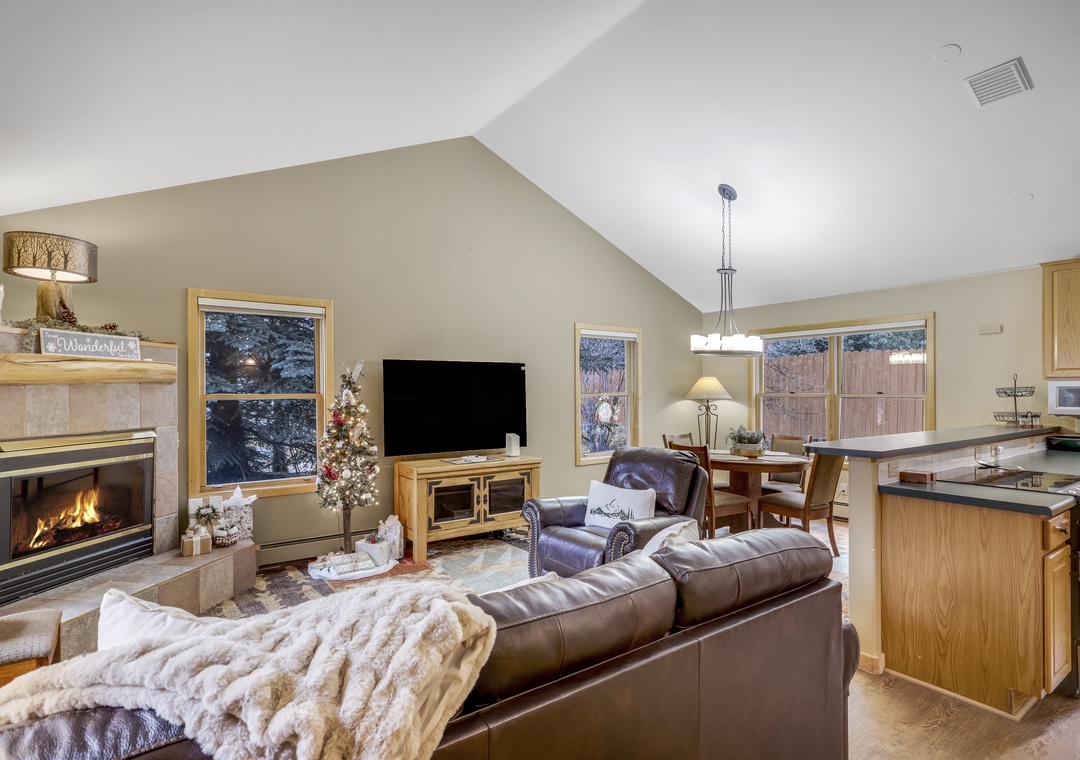 Welcome to our Snake River Village Townhome, a sunny, bright, and beautifully maintained ground-level retreat designed for comfort and effortless mountain living. The open-concept layout pairs warm alpine décor with contemporary finishes, creating a welcoming space to unwind after an adventure-packed day. Large windows invite in natural light, enhancing the cozy living room with its fireplace and comfortable seating. A fully equipped kitchen, spacious dining area, and private bedrooms make this home ideal for families, couples, or small groups seeking both relaxation and proximity to the action. With thoughtful touches throughout and a true home-away-from-home feel, this residence is tailored for the perfect Colorado getaway.