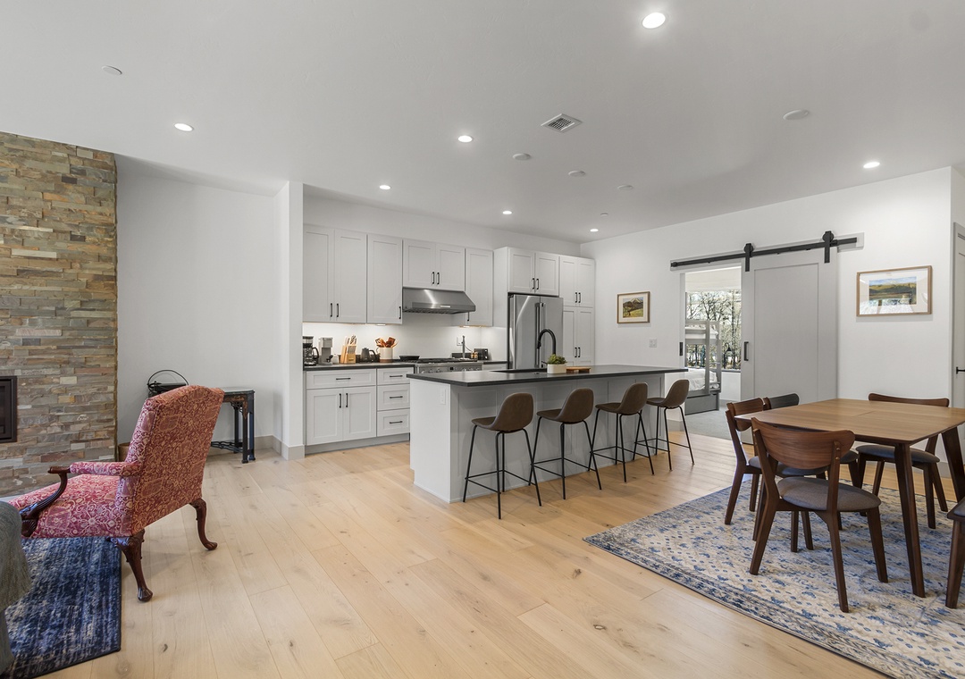 Wake up to panoramic views of rolling hills and towering peaks, immersing yourself in the beauty of the Rocky Mountains. The open-concept living and dining area welcomes you with warm wood accents and ample seating for gatherings. Walk into the kitchen and create delicious meals with modern appliances and ample counter space.