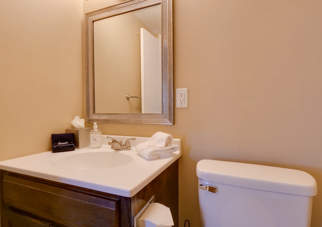 We provide a basic starter pack for guests, including travel-size toiletries, a limited supply of paper products, and laundry/dishwasher detergent. This includes enough to get you through a day or two, depending on personal usage. If you have a longer stay planned, you may wish to bring or purchase more. Additionally, we do not supply coffee, spices, or other kitchen food items.