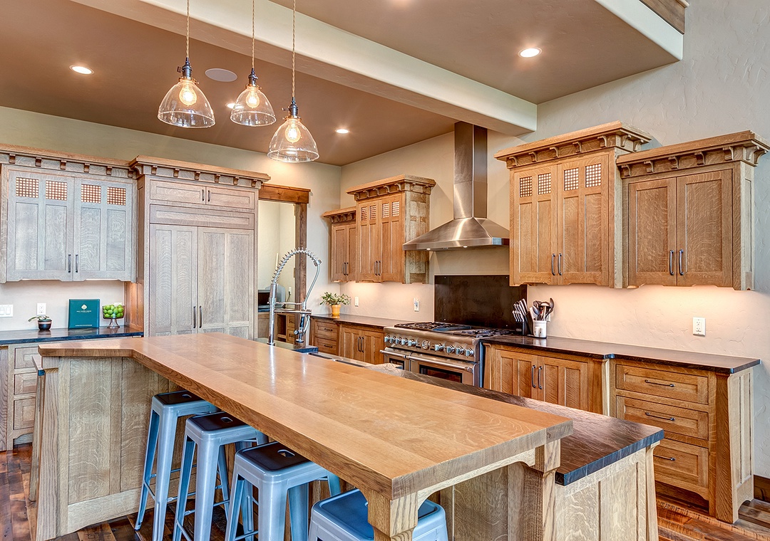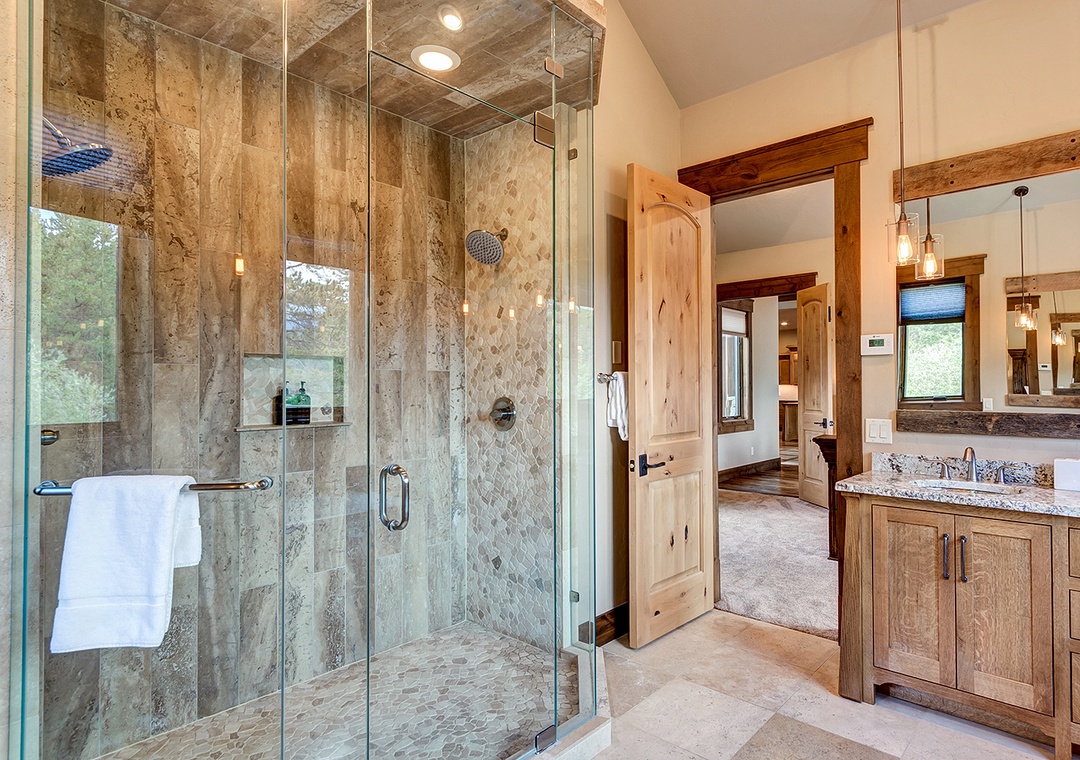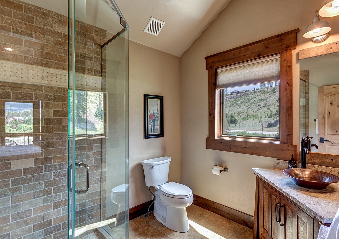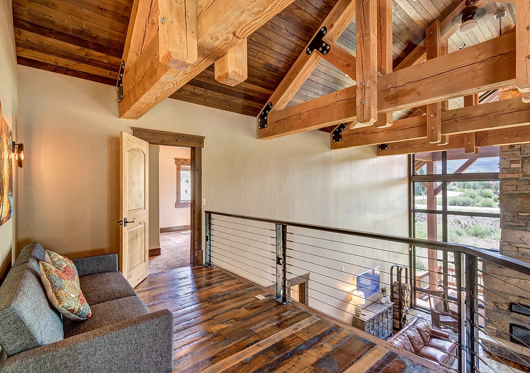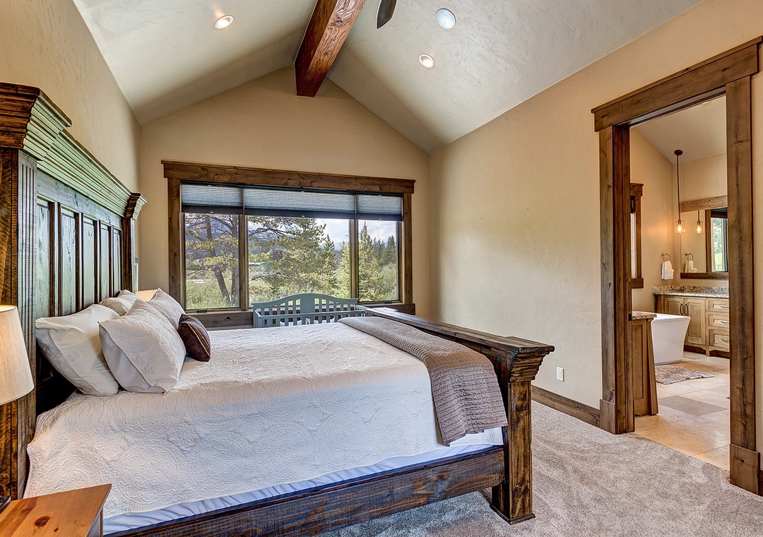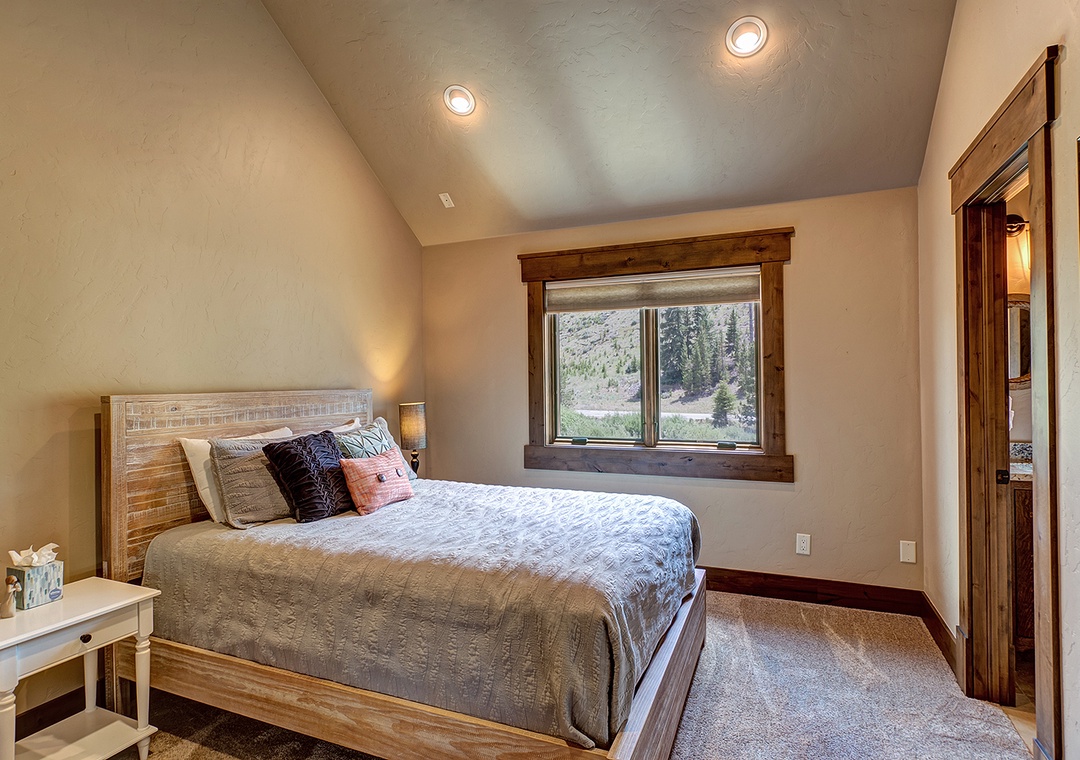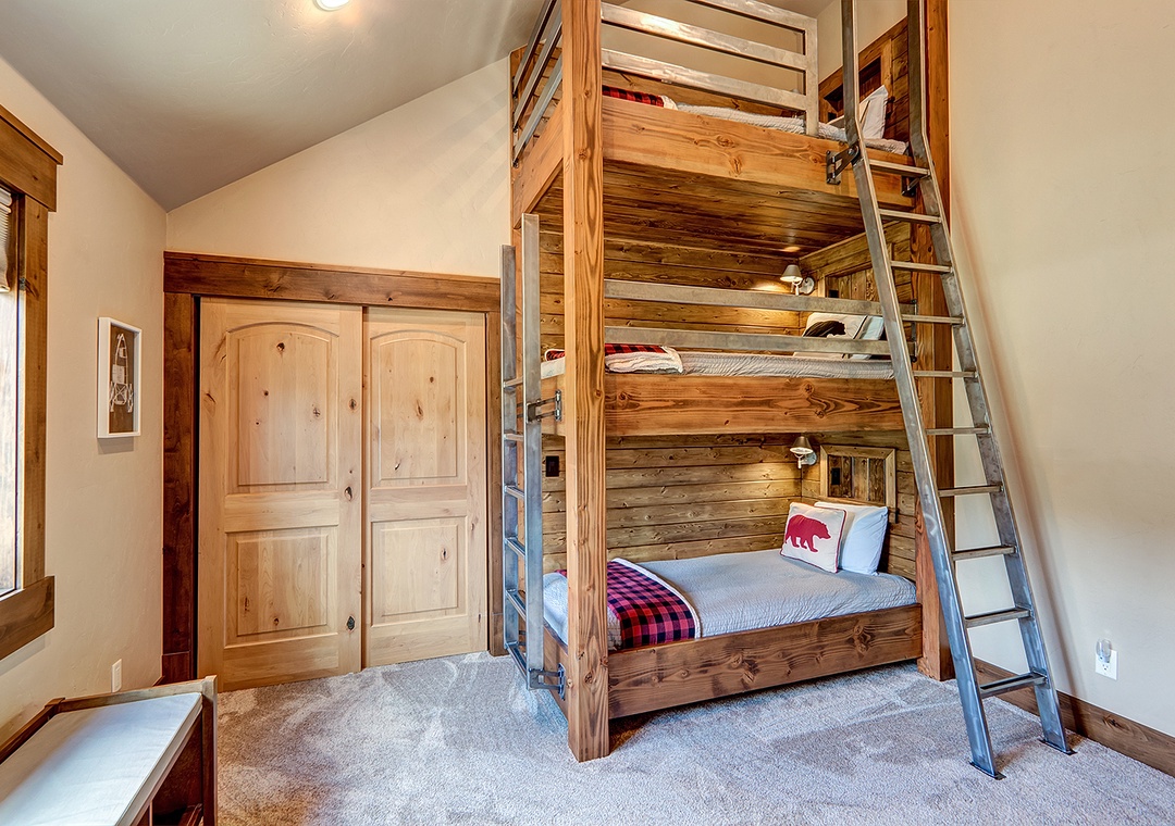 The other bedrooms can be found on the upstairs part of the house, and are decorated with luxury furnishings, as well as access to the custom-designed bathrooms, and views from the huge windows. The second bedroom has a king bed, and a walk-out private deck to enjoy the crisp mountain air while enjoying views. The third bedroom includes a fun bunk bed making the room perfect for the kids.