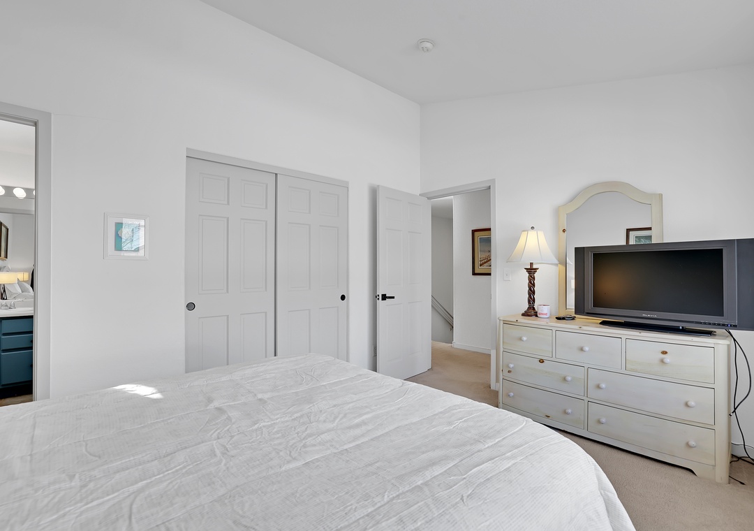 The primary suite offers a king-size bed, an ensuite bath, and views of the pond to start and end your day in serene comfort. The second and third bedrooms are equally inviting, each with comfortable bedding and easy access to a well-appointed full bathroom.