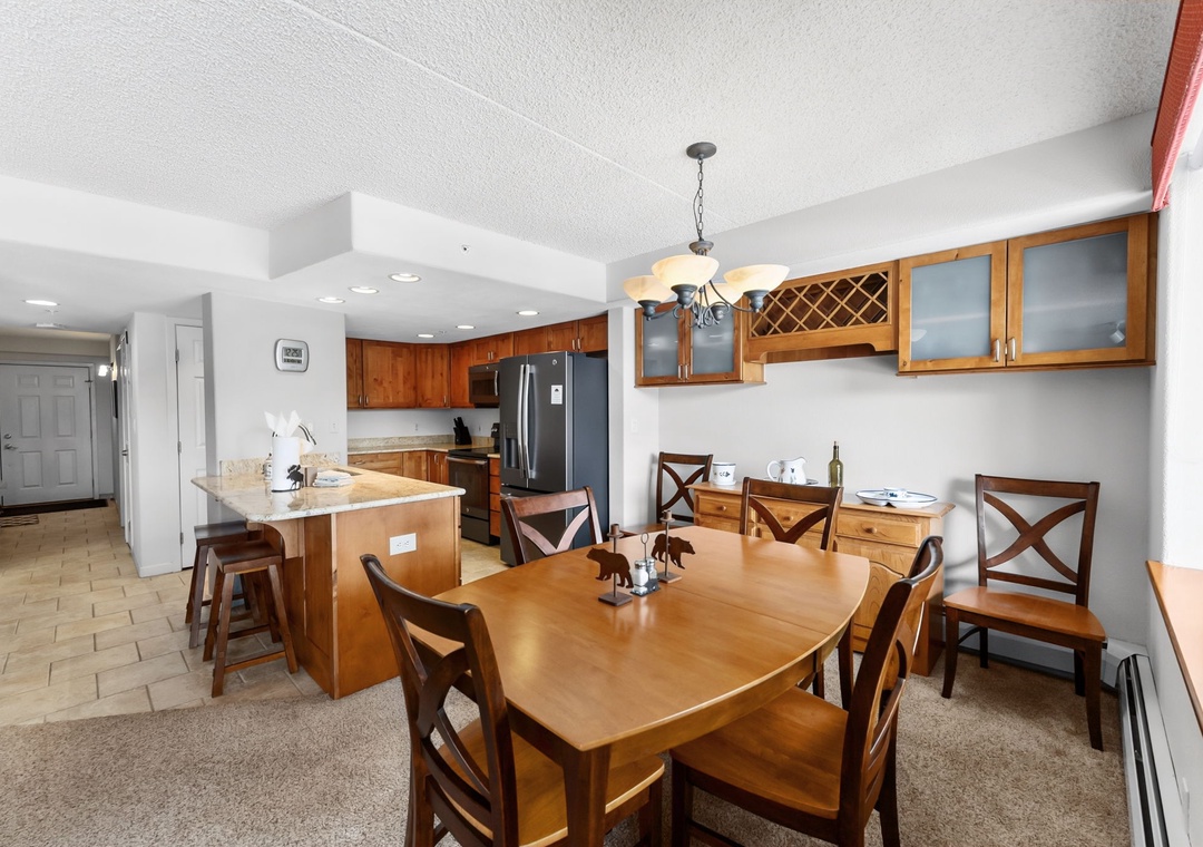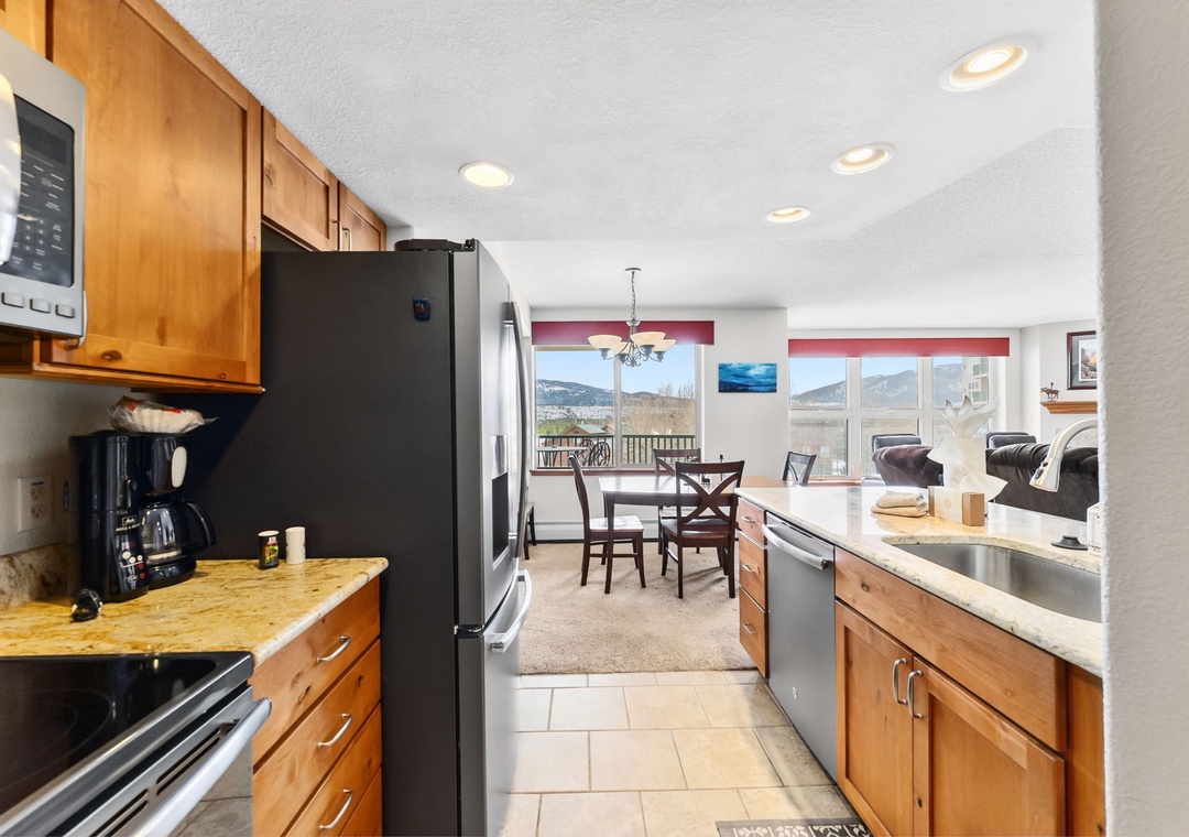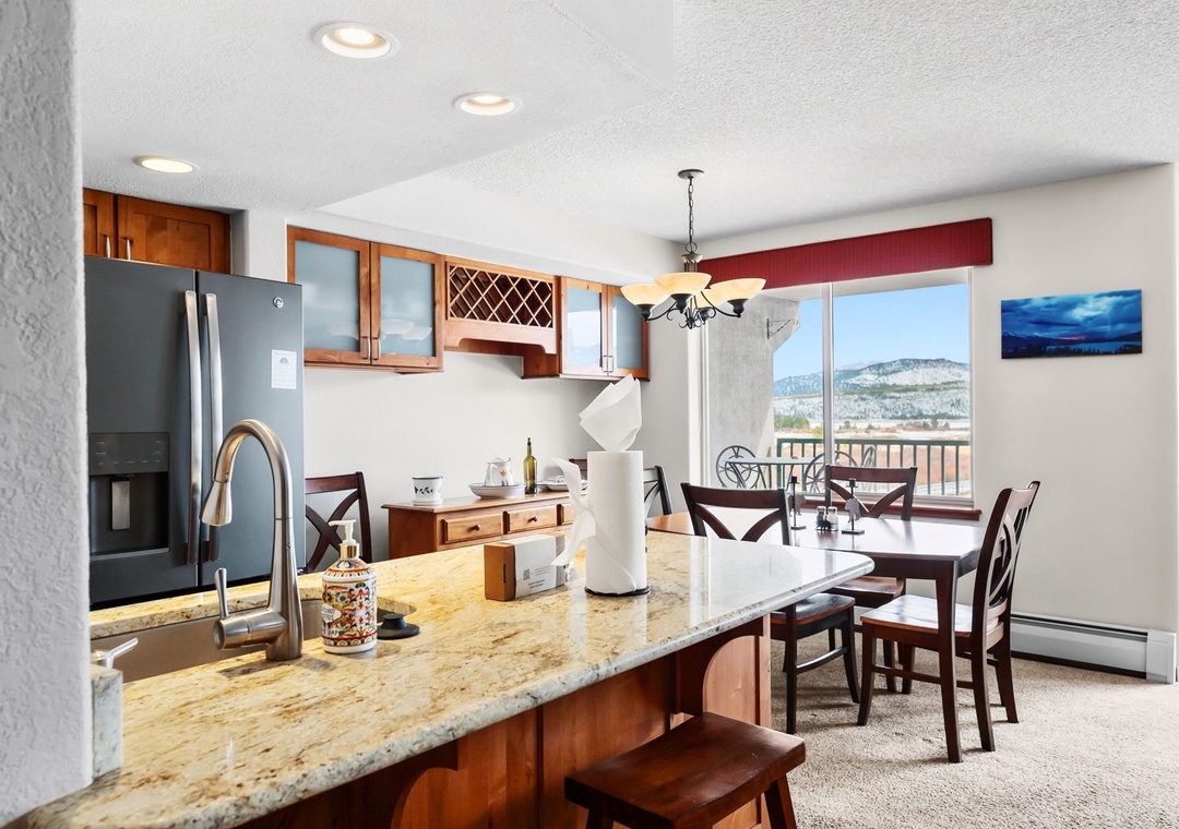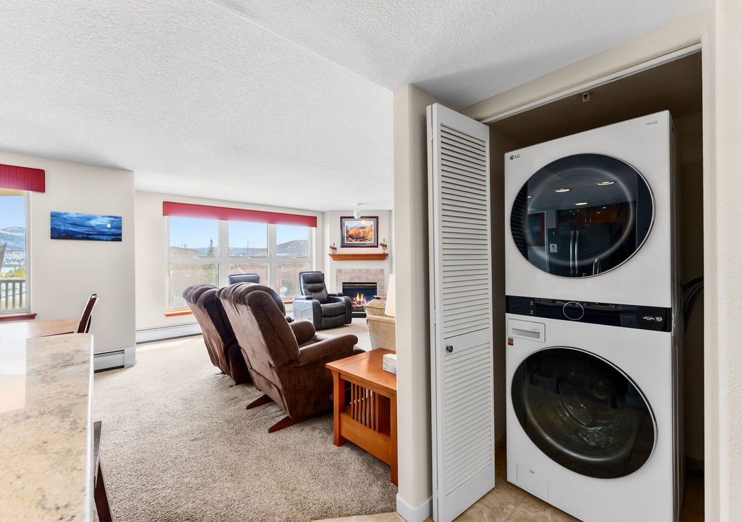 Welcome to this inviting 2-bedroom, 2-bath mountain condo in Frisco, Colorado. Offering a well-designed living space, this residence features an open-concept living area with comfortable seating, large windows for natural light, and a warm mountain feel throughout. The fully equipped kitchen and adjacent dining area make it easy to enjoy meals together after a day of adventure. Modern conveniences like in-unit laundry add comfort for longer stays, while the private balcony is perfect for enjoying the crisp alpine air.