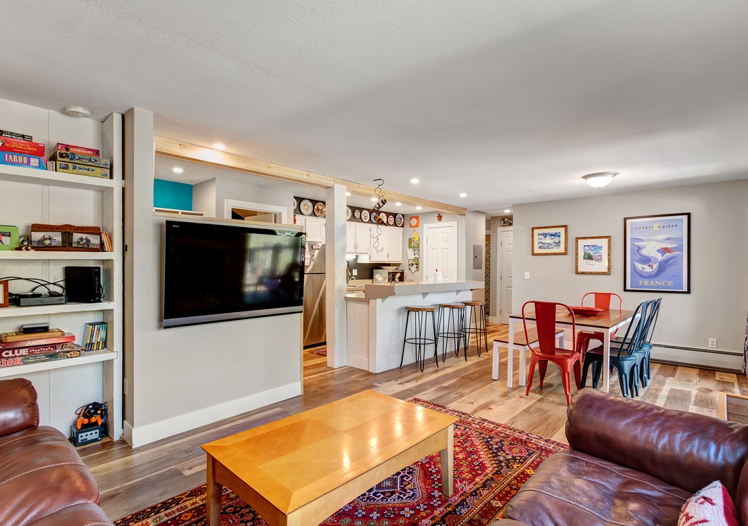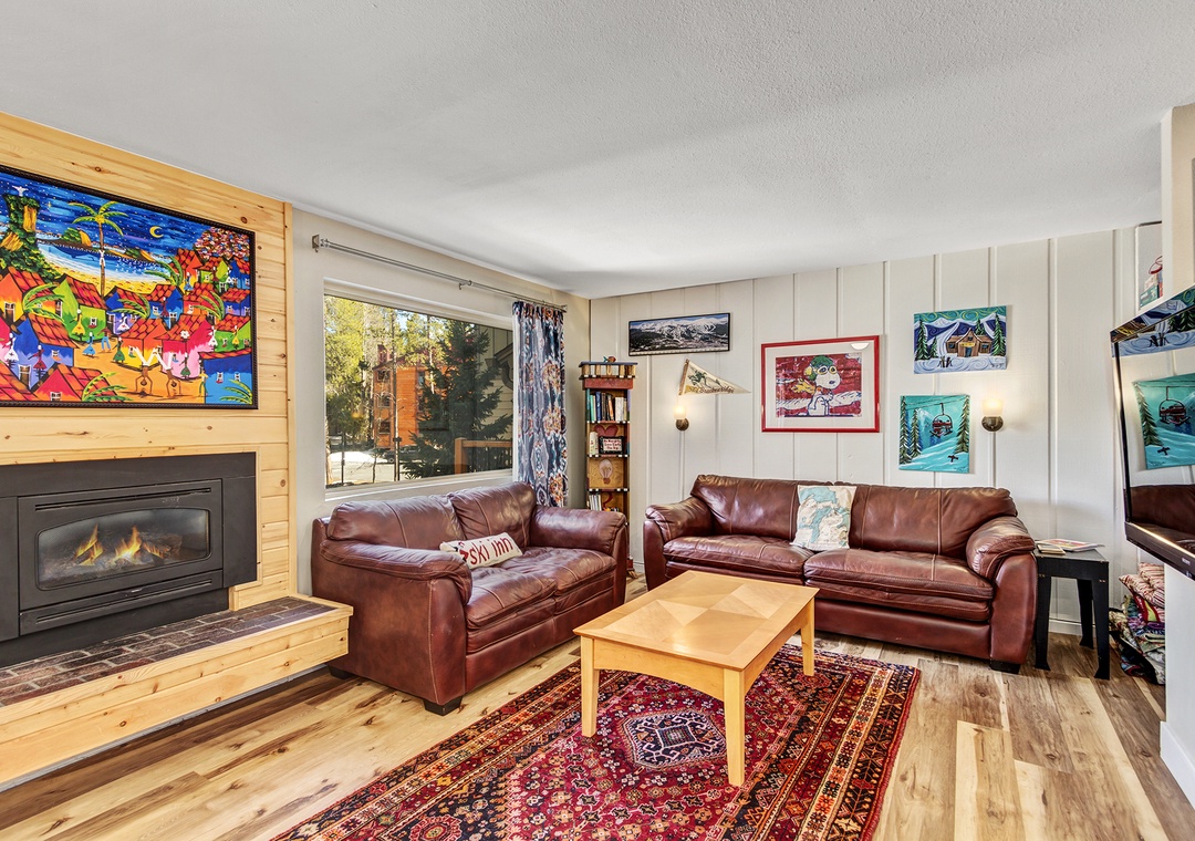 As you step inside, you'll be greeted by a warm and inviting atmosphere, with rustic furnishings and a cozy gas fireplace. The living room is the perfect place to unwind after a day on the slopes, with comfortable seating and a flat-screen TV.