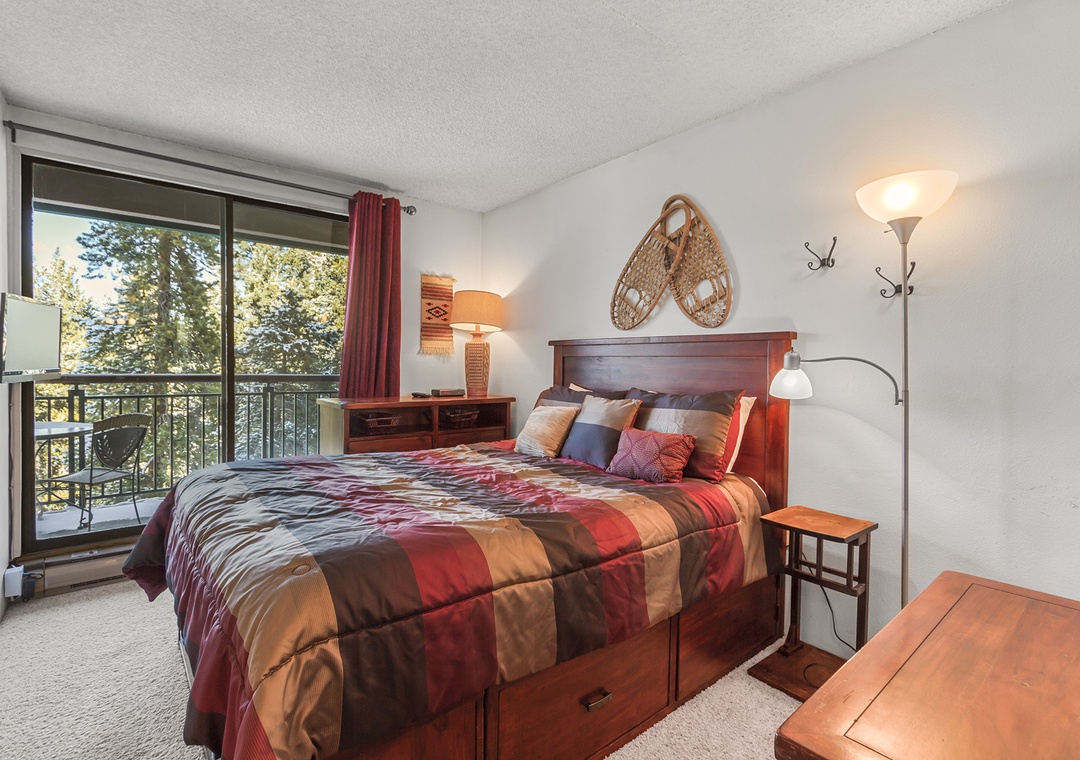 Enjoy the convenience of this wonderful ski-in/out Trails End property. Access the Quicksilver lift and Peak 9 base, just steps out your back door. Main Street Breckenridge is just two blocks away. This unit features new furniture with a rustic mountain theme. Guests enjoy the new 55" inch flat screen TV and flat screen TV in the bedroom as well. Beautiful views down valley to the north from your private balcony. After a day on the slopes or shopping relax in the indoor/outdoor hot tubs and sauna on site. Guests can also enjoy the outdoor pool and indoor/outdoor hot tubs across the street. Free Wi-Fi, and laundry access are also included with your stay at Trails End.