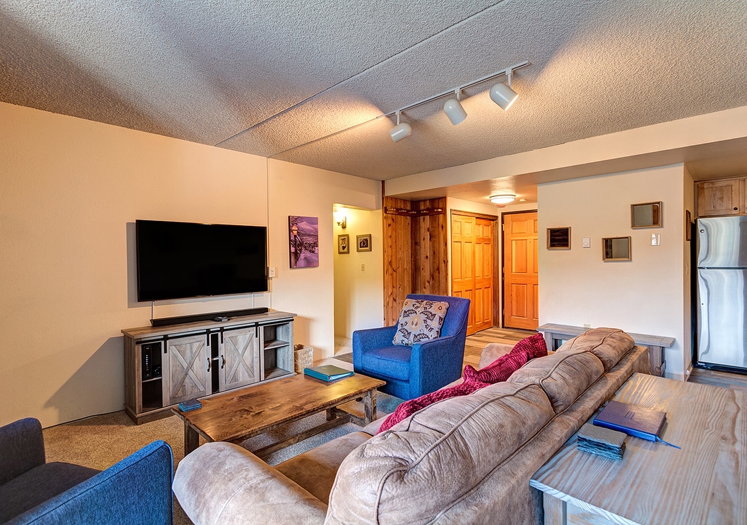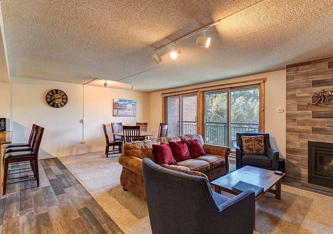 This place was clean and had 2 sets of double glass doors that opened onto the patio. Great place for morning coffee or evening relaxing. Beautiful view. It is easy walking distance to downtown Breckenridge.