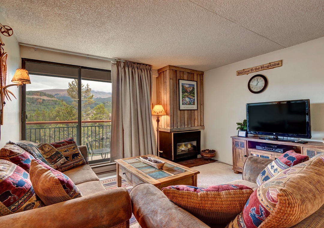 Situated directly above the Quicksilver Lift at the base of Peak 9 and just two blocks to Main St. Breckenridge this location is hard to beat! The Trails End building offers unparalleled convenience to both town and mountain. This condo offers beautiful mountain views from the privacy of your fifth floor balcony. The property was recently upgraded with new furniture and a flat screen television in the living area. After a day on the slopes or trails relax in the indoor/outdoor hot tubs and sauna on site. Or enjoy the outdoor pool and indoor/outdoor hot tubs across the street. Free Wi-Fi, and laundry access are also included with your stay at Trails End.