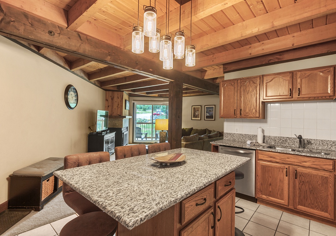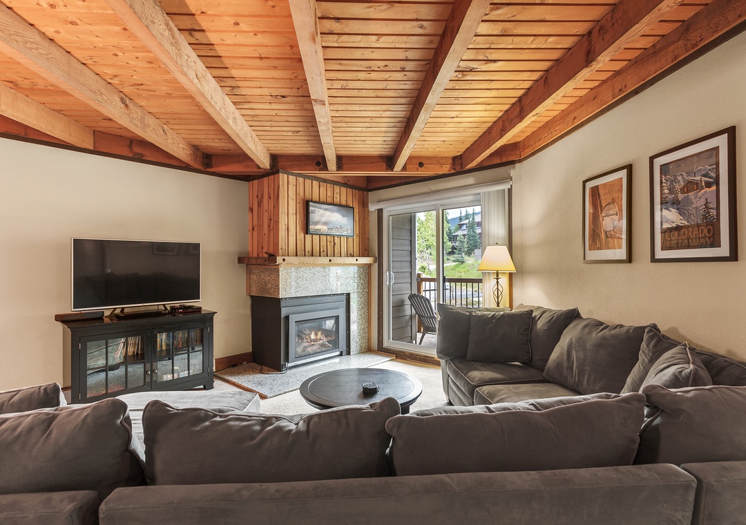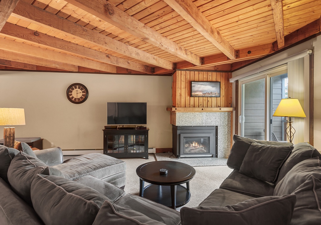 Comfortable Living Space: The condo boasts a warm and inviting ambiance, featuring 2 bedrooms and 2 bathrooms. Relax in the comfortable living area, which is adorned with rustic furnishings and a cozy fireplace, making it the ideal spot to unwind after a day of adventure.