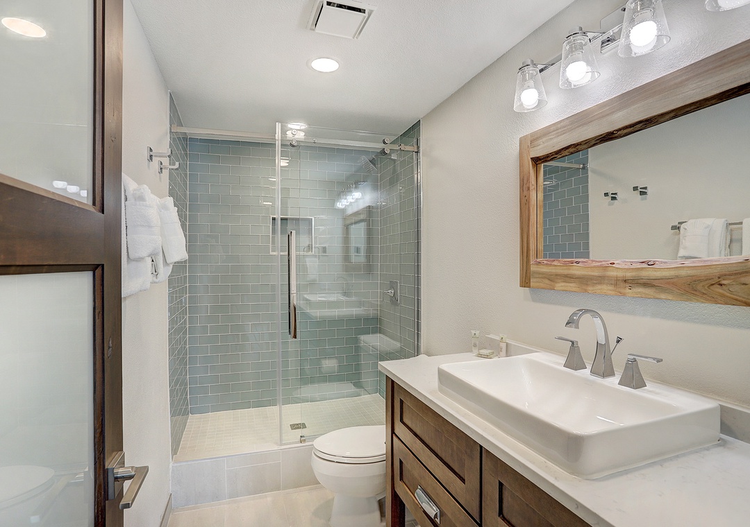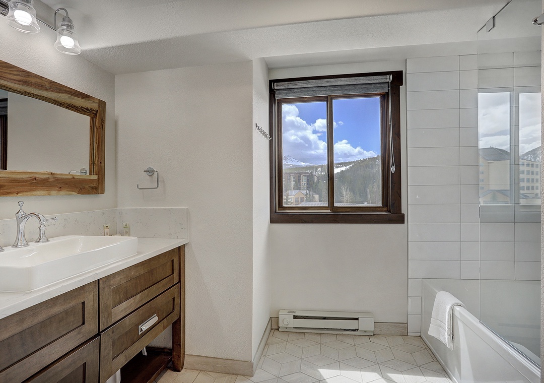 The master bathroom has a full size walk in shower with barn door sliding glass doors. The second bathroom has a full size bathtub. This condo is a one of kind luxurious getaway right in the middle of Breckenridge. This is a perfect location for ski-in/ski-out guests and also has the close proximity to Main Street downtown Breckenridge. The condo is the perfect place to relax after a long day on the mountain.
