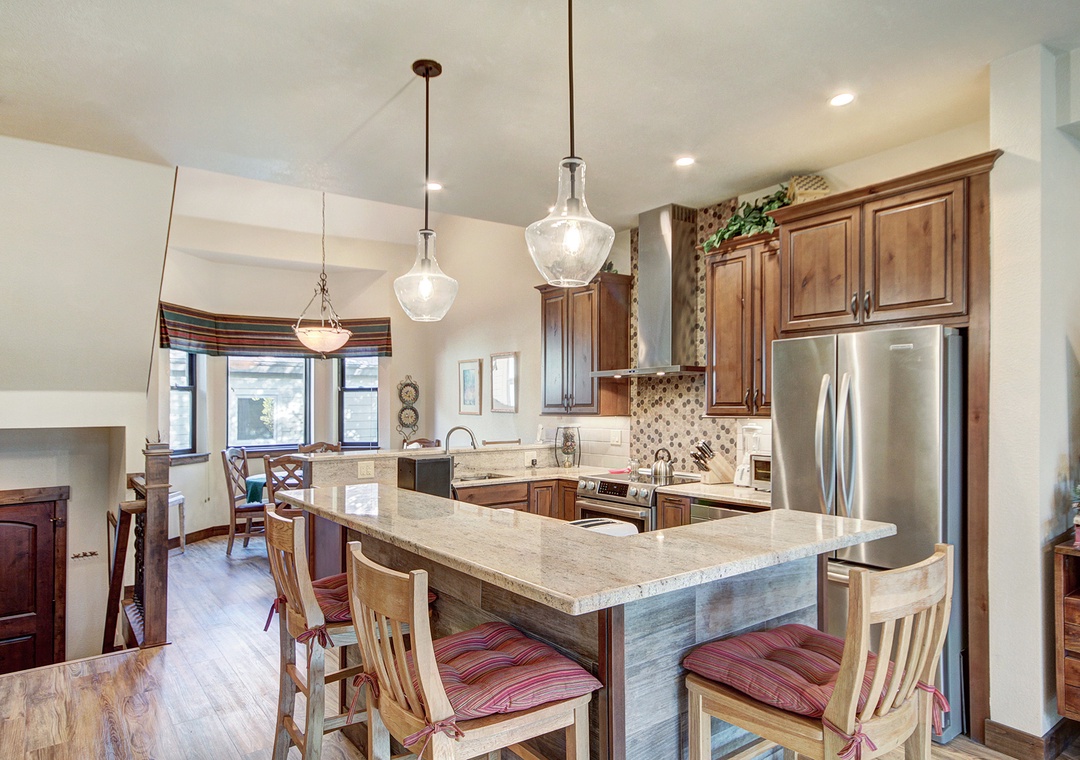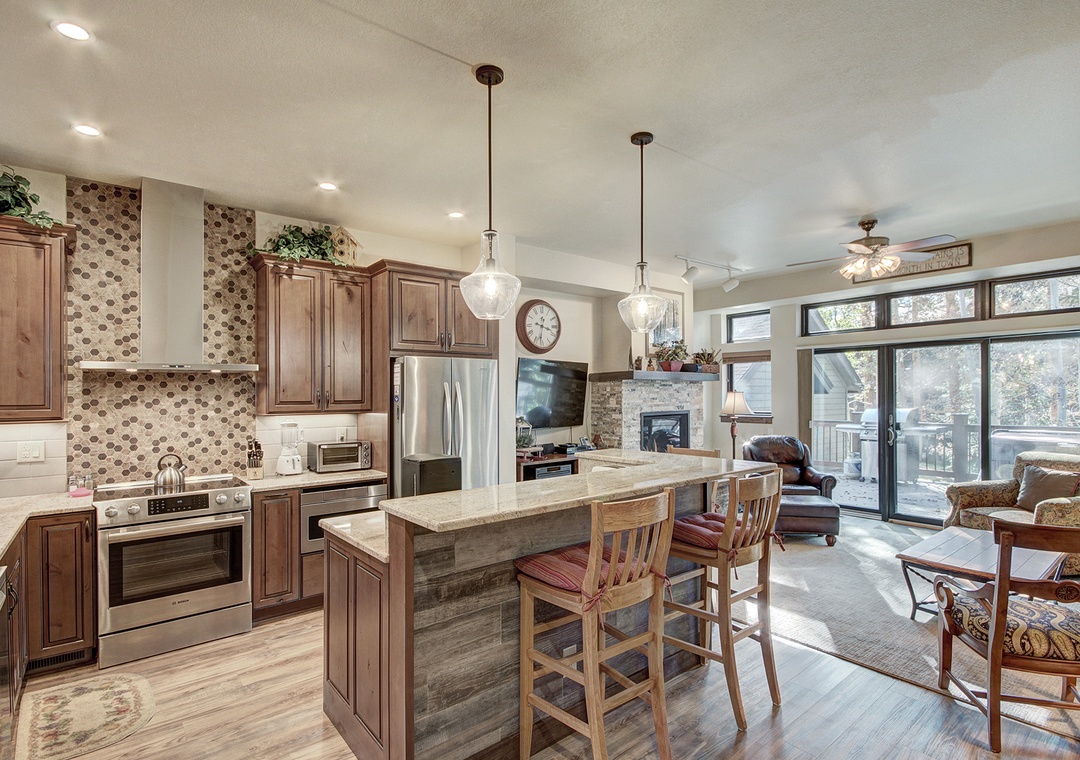 Upon entry into the beautiful, newly remodeled townhome, you are quickly greeted with natural light, stunning modern furnishes, and cozy mountain decor. Enjoy a gourmet, open kitchen and living area that provides wooded views as well as access to the private deck. Stainless steel appliances, granite countertops, modern flooring and stone built fireplace are just some of features that make the main floor space cozy.