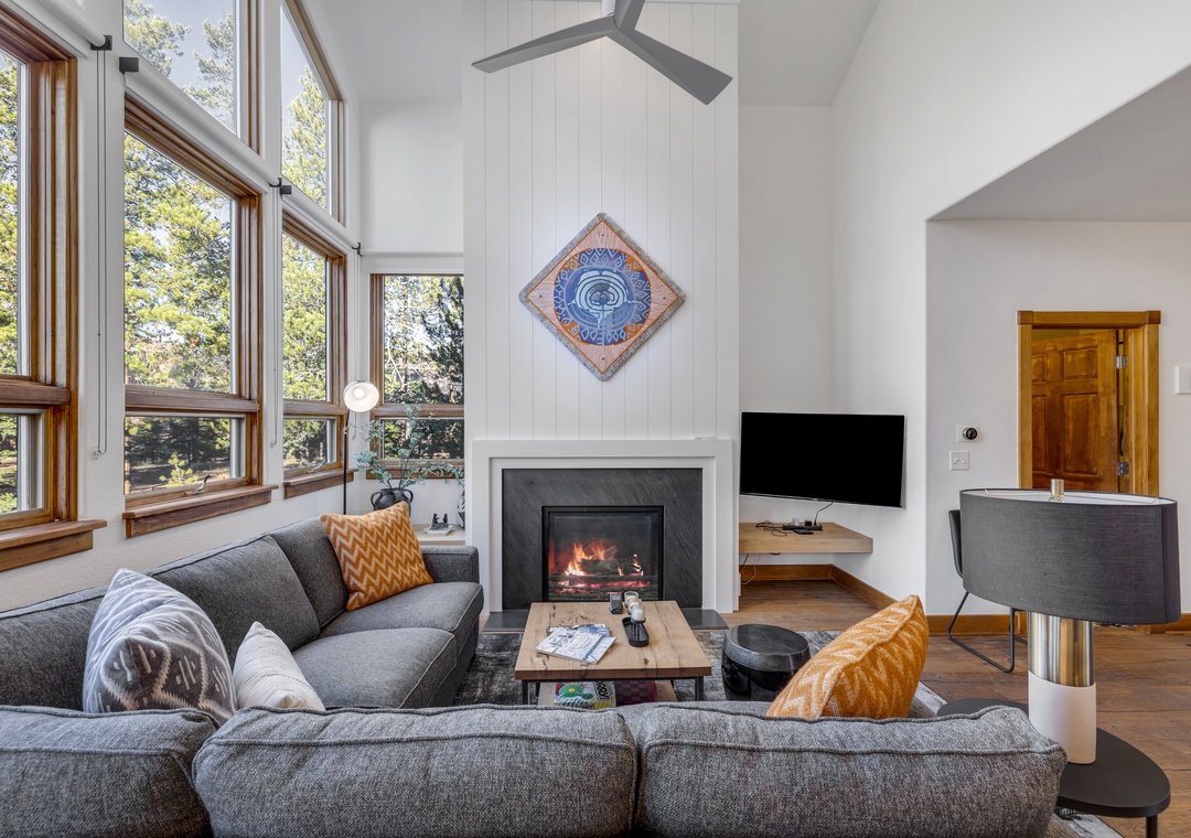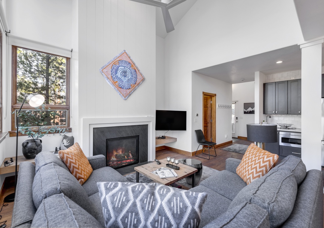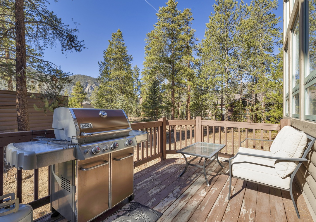Inside, you’ll find a bright and welcoming open-concept living space with soaring ceilings, a cozy gas fireplace, and a fully equipped kitchen featuring granite countertops, stainless steel appliances, and a breakfast bar. The private deck offers a peaceful setting to enjoy your morning beverage or unwind at the end of the day while watching the beautiful sunsets we get in Summit County.