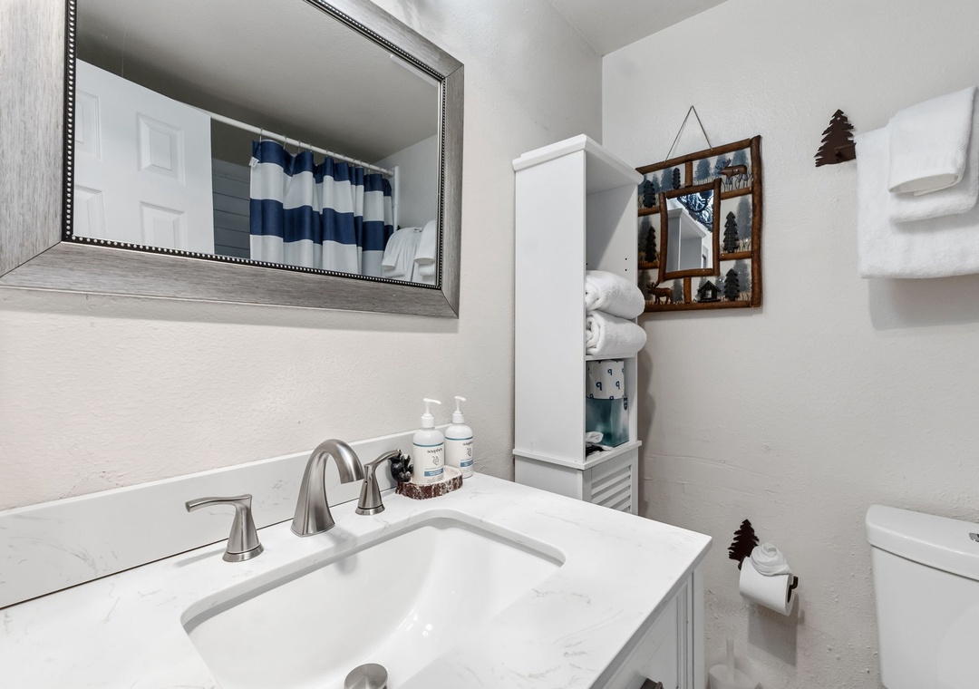We provide a basic starter pack for guests, including travel-size toiletries, a limited supply of paper products, and laundry/dishwasher detergent. This includes enough to get you through a day or two, depending on personal usage. If you have a longer stay planned, you may wish to bring or purchase more. Additionally, we do not supply coffee, spices, or other kitchen food items.