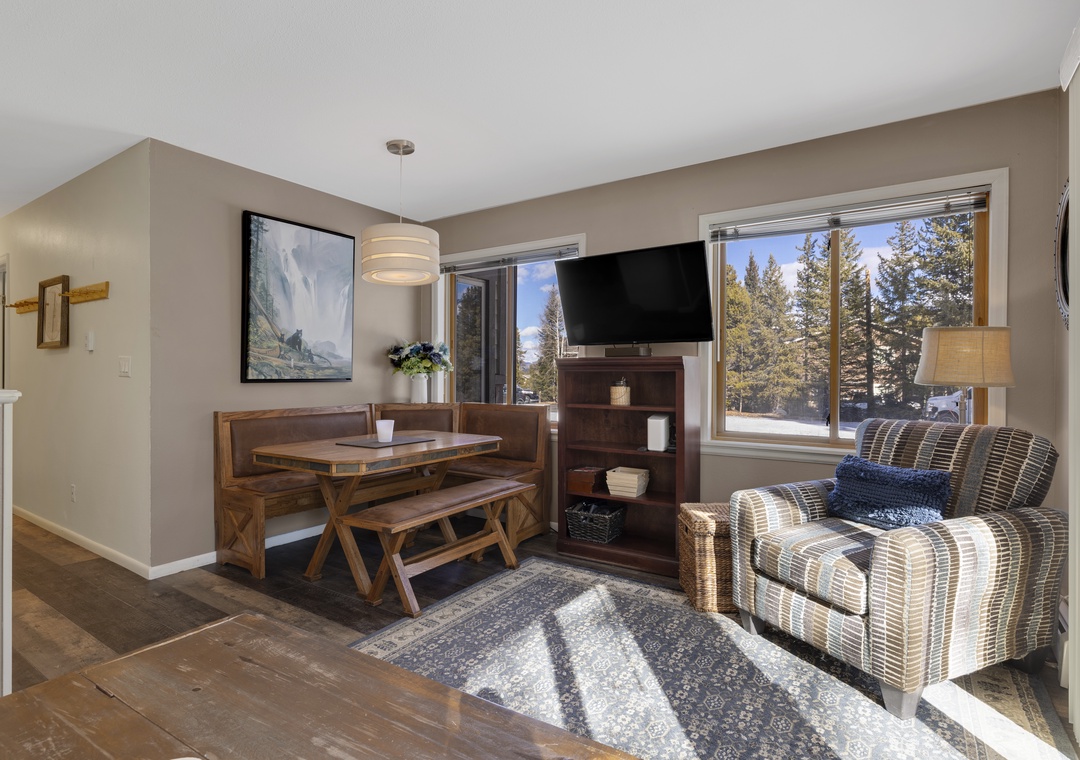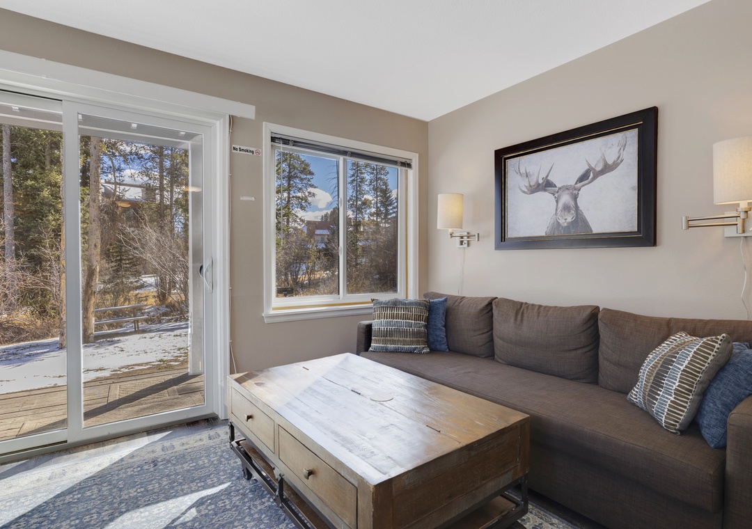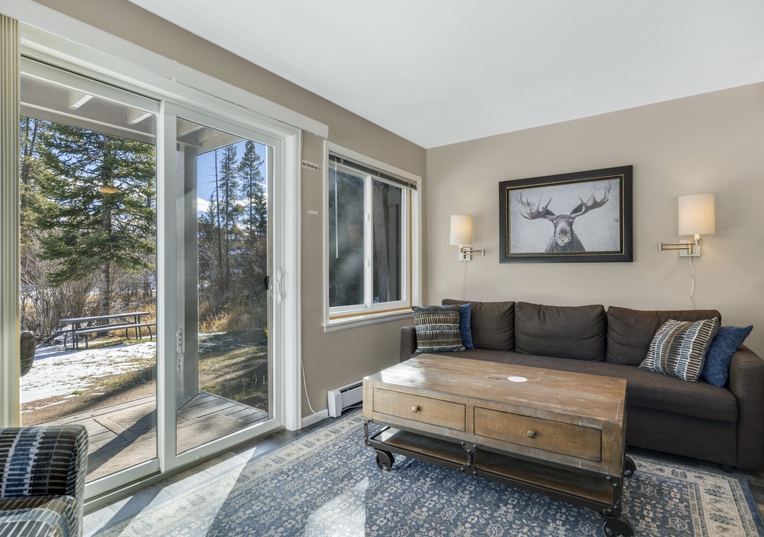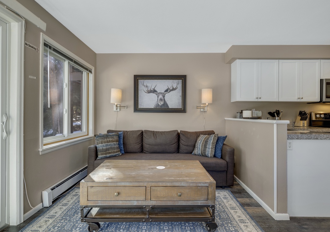 This cozy 1-bedroom Breckenridge hideaway offers warm mountain charm paired with modern touches, perfect for relaxing after a day of adventure. The inviting living area includes comfortable seating and large windows that bring in natural light and alpine ambiance. A fully equipped kitchen provides everything you need for easy meal preparation, while the thoughtfully designed layout creates a welcoming space to unwind. The bedroom features a plush queen bed, offering a peaceful and comfortable place to rest.