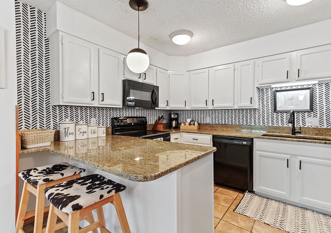 Enjoy an open-concept kitchen/living room. The kitchen includes convection oven, electric cooktop, brand new large sink and faucet, granite counters, coffee station and plenty of prep space. The master bedroom has king-sized bed with twin sleeper sofa for extra sleeping or a perfect reading nook to escape and relax. The attached bathroom is a half bath. There is a full bathroom off of the kitchen / living area with tub/shower combo.