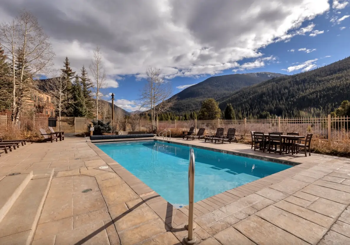 Studios to 4 bedroom condos | Full kitchens or kitchenettes (studios) | Open living areas | Gas fireplaces | Private balconies or patios | Slope, mountain, wetland, or Divide views (varies by condo) | Free Wi‑Fi | TVs | Ski lockers | Year-round outdoor heated pool | Two outdoor hot tubs facing the slopes | Fitness room | Sauna/steam room (varies by facility) | Lobby lounge with pool table and seating | Heated underground parking | Elevators | River Run Village perimeter location | Walk to River Run Gondola & Summit Express | Walk to village restaurants, shops & events | Near bike paths, Snake River & Keystone’s festivals