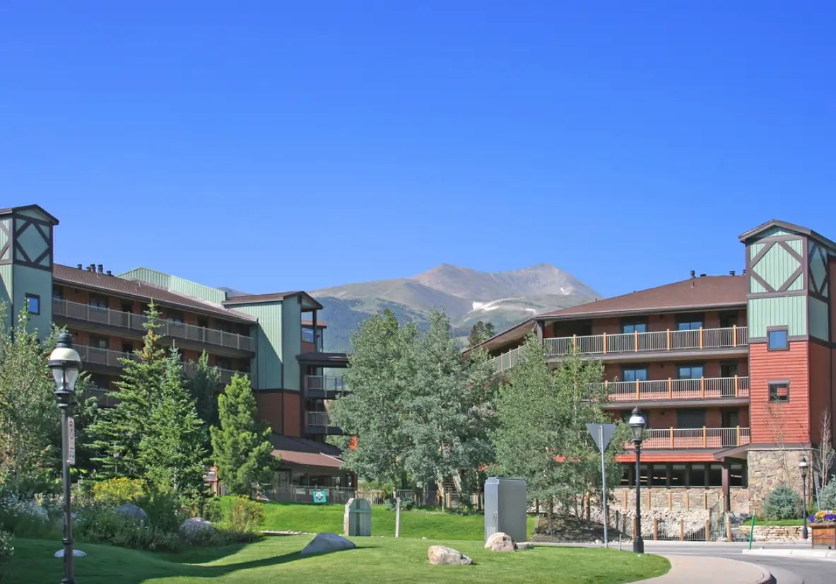 2 bedroom and 2 bedroom + loft condos | Full kitchens | Open living and dining areas | Gas or wood-burning fireplaces (varies by condo) | Private balconies | Ski-in via Four O’Clock Run | Mountain, town, or ski area views (many condos) | In-unit washer and dryer | Free Wi‑Fi | TVs | Two outdoor hot tubs | Covered and surface parking (varies) | Elevator access | Ski storage | On free Breckenridge ski shuttle route (stops at complex) | One block to Main Street shops, dining & nightlife | Near Riverwalk Center, BreckConnect Gondola shuttle stops & Blue River path | Trail access for summer hiking and biking from Four O’Clock area