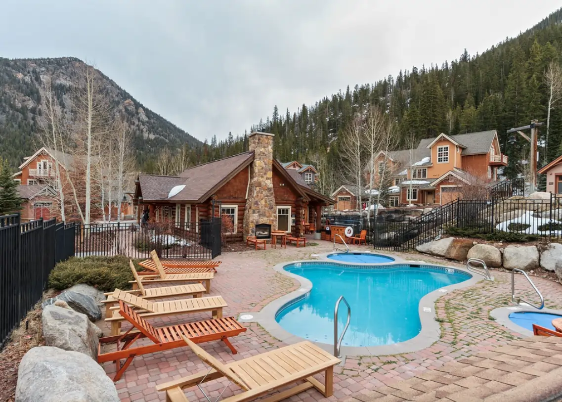 2–4 bedroom townhomes | 2–4+ bathrooms | Multi-level floorplans | Full kitchens | Open living and dining areas | Gas fireplaces | Private decks or patios | Wooded and mountain views (many townhomes) | In-home washer and dryer | Free Wi‑Fi | TVs | Private 1–2 car garages or assigned parking (varies by size) | Minnie’s Cabin community clubhouse | Year-round outdoor heated pool | Two outdoor hot tubs | Outdoor fireplace | Gas grills and patio seating | Indoor lounge with fireplace, pool table, TV, bar area & changing rooms | Located in East Keystone | On shuttle route to River Run Gondola & Keystone base areas | Near Snake River, bike path, and local hiking/biking/snowshoe trails
