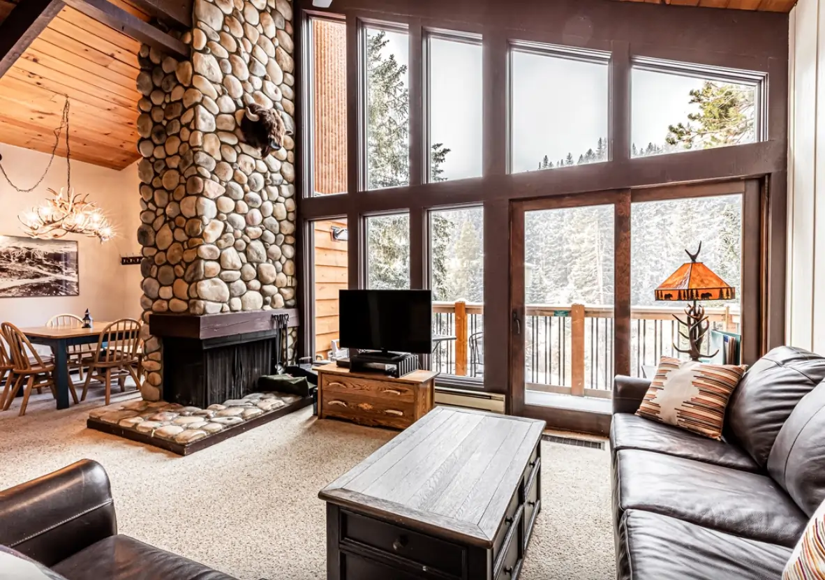 2 bedroom, 3 bath condos (some with lofts) | Generous floorplans | Full kitchens | Open living and dining areas | Gas fireplaces | Private balconies | River, forest, or mountain views (many condos) | Free Wi‑Fi | TVs | Coin-operated laundry in building or nearby | Underground and/or surface parking (varies by building/unit) | Shared outdoor grills & picnic area | Directly along Blue River | 5–10 minute walk to Quicksilver SuperChair & Peak 9 base | 5–10 minute walk to Main Street Station & Main Street dining and shops | Access to Columbine outdoor heated pool | Access to multiple indoor/outdoor hot tubs at Columbine Recreation Center (seasonal) | Near Burro Trail, river path & National Forest hiking
